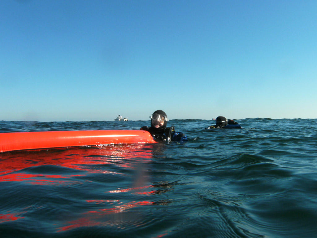 On the second dive, Martin and I understook to send up a DSMB from the Cuckoo so that the RHIB driver could record the exact location on the boat's GPS system.