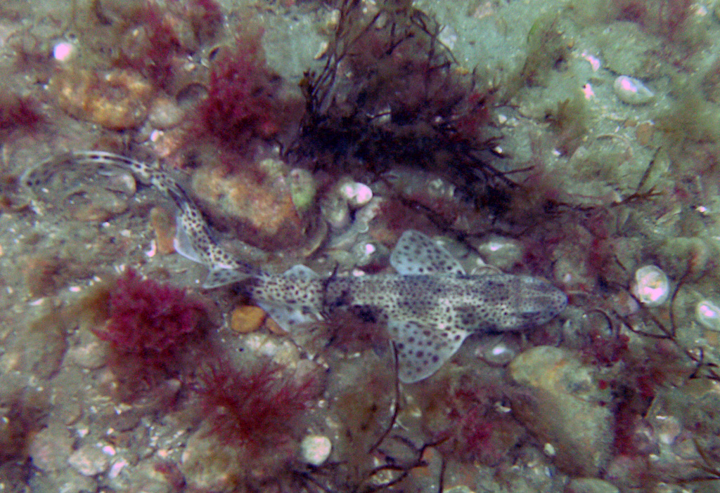 On the first dive, we found the wreck (not hard as the 3 wrecks are joined by ropes on the seabed to make them easy to navigate between) and took a few photos. There were plenty of fish around the Mulberry parts and I spotted a Dogfish as we returned to the Mulberry to return to the boat.
