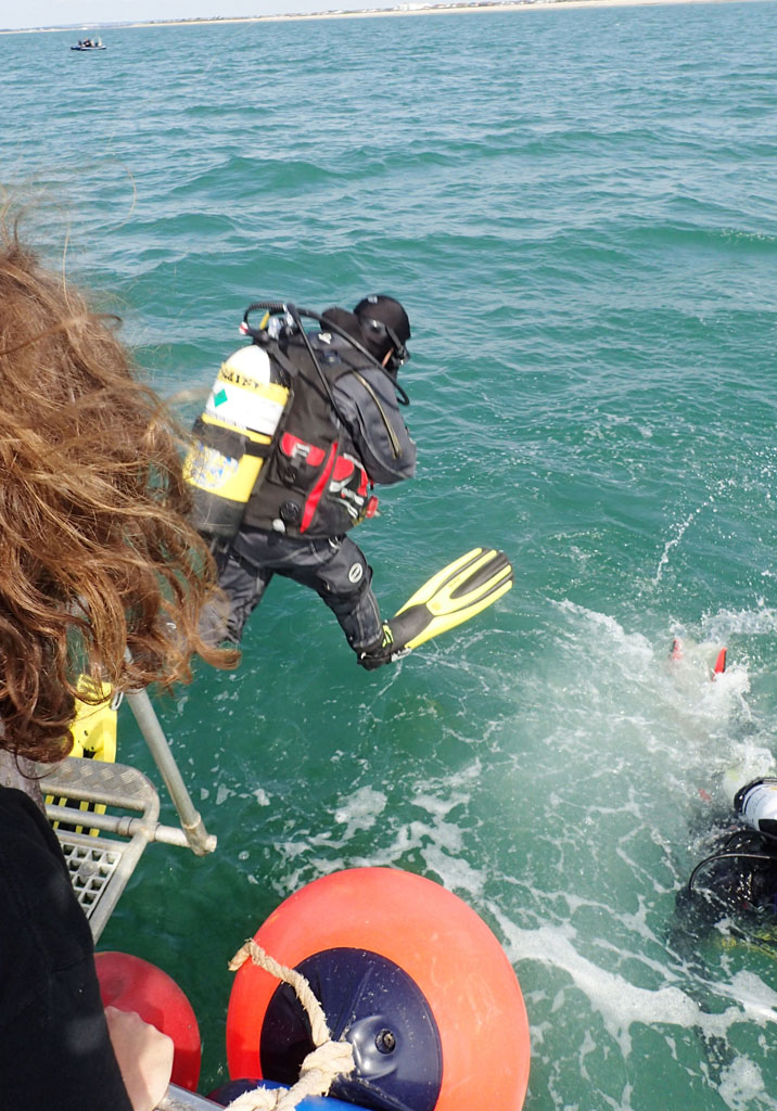 Cameron, Emma and Howard (A diver from Richmond BSAC) went in first and laid a line, but it took them a long time to find the correct reference point and so Thanos (another Richmond diver) and I waited some time, until the signal to dive was finally given.