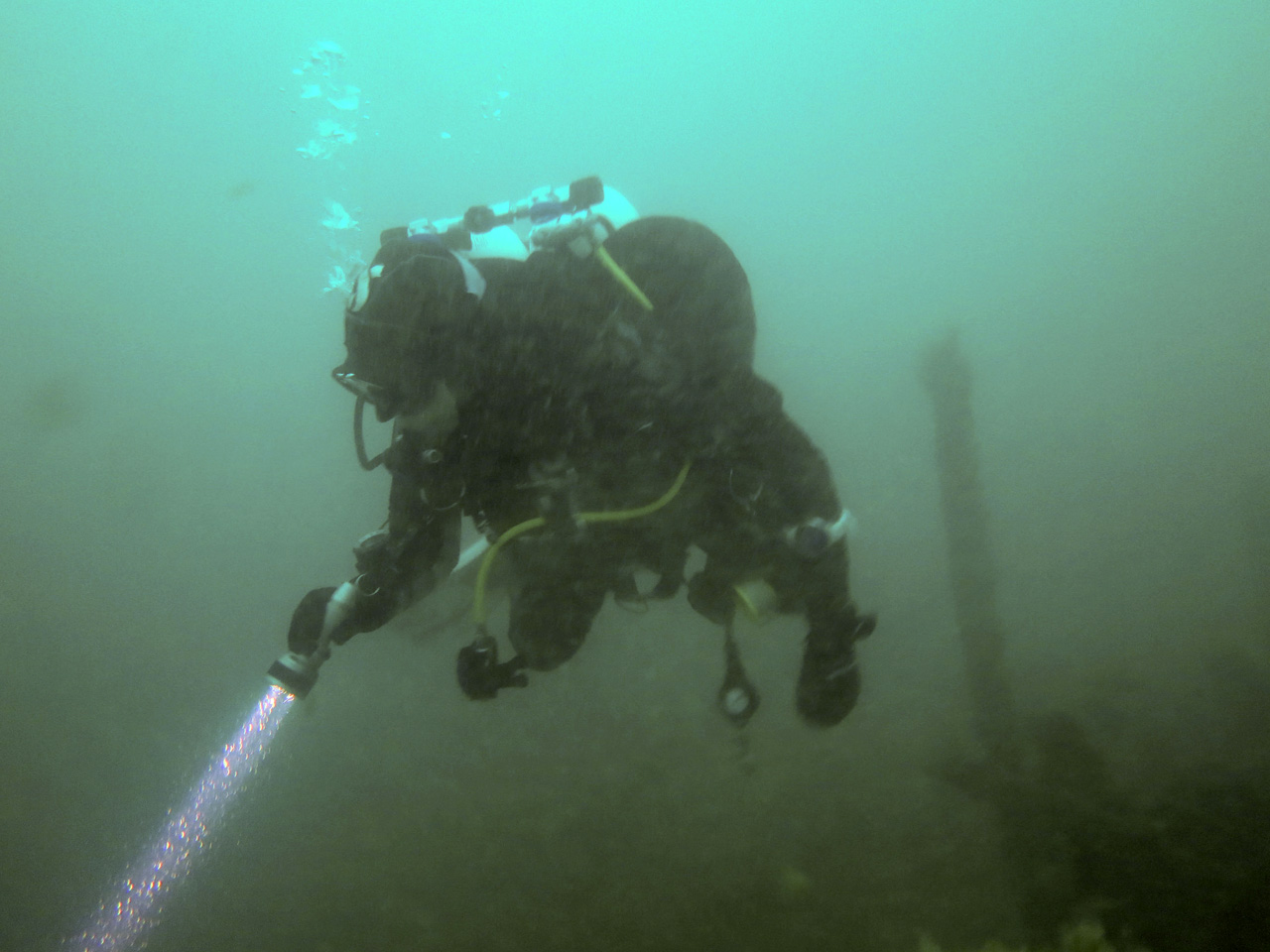 John and I stayed together well and started to ascend after around 25 minute on the wreck, this had resulted in a 15 minute predicted deco time for me, but after switching gasses, John suddenly disappeared (turned out he had been struggling with a part filled DSMB affecting his buoyancy, so he jetisoned it, but lost contact in the process).