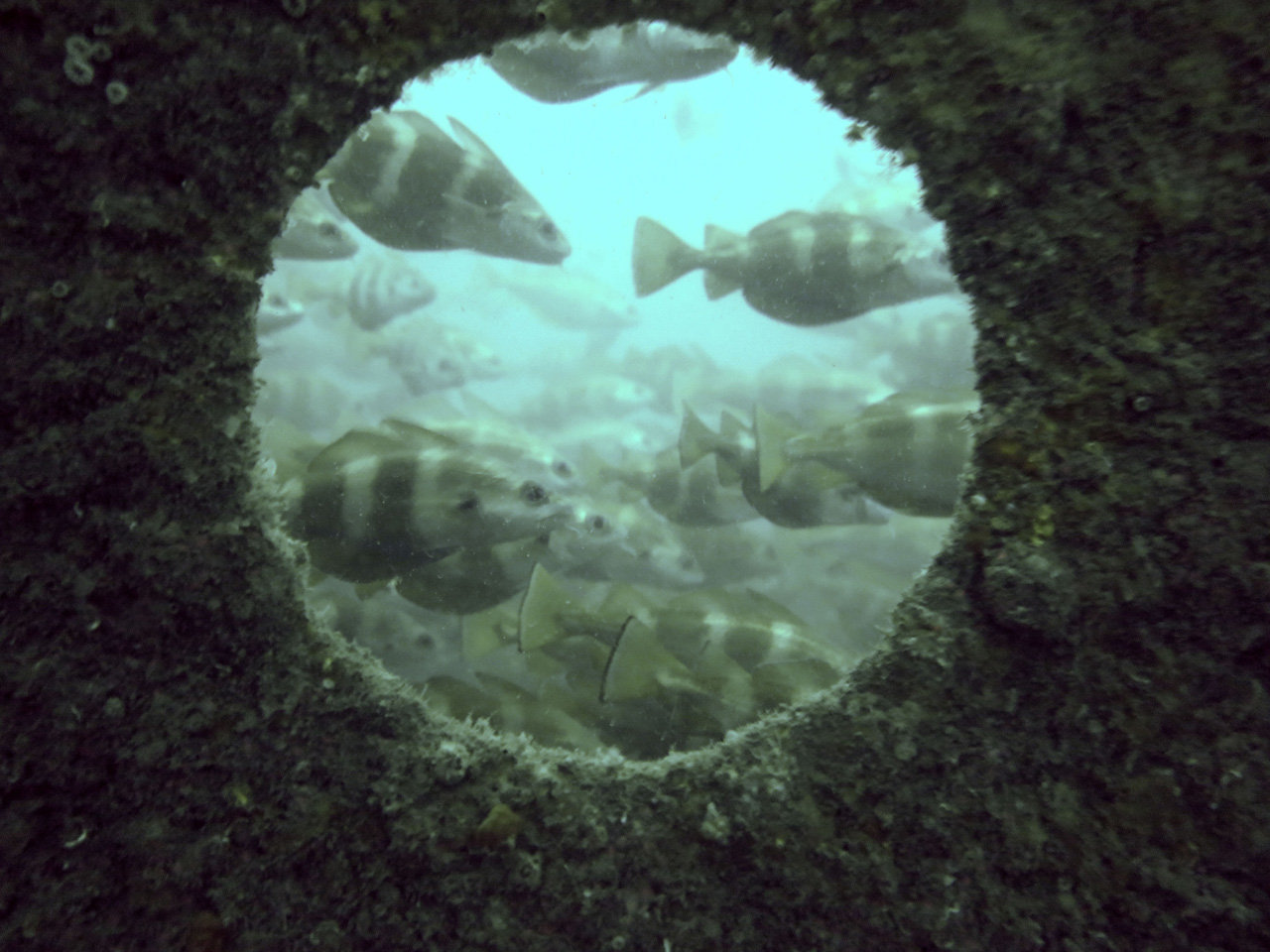 To avoid them, we swam to the cockpit and then through each section, by which time the other divers were moving off.