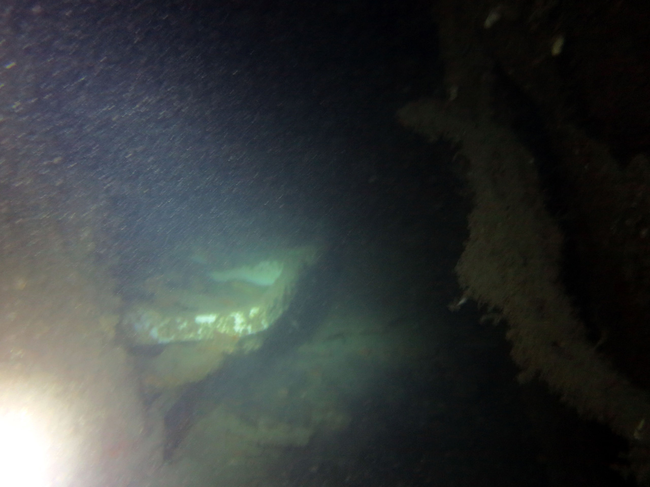 We swam across the wreckage, heading what seemed to be astern and I'm fairly sure we saw conrods for the engine amongst some of the upstanding machinery, but it was pretty dark and we could only really see as far as our torches illuminated.