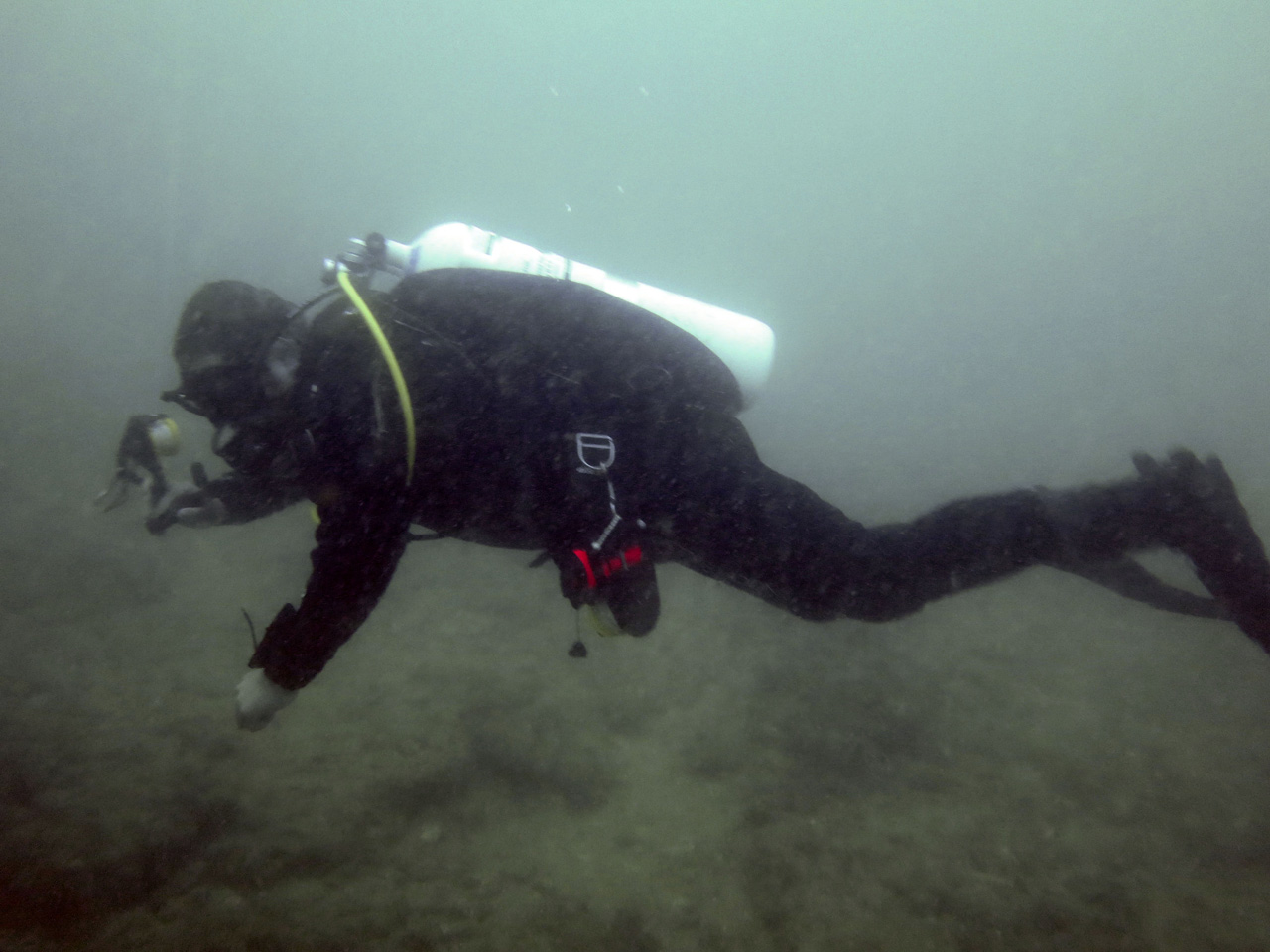 One diver, was lying on the ground, transfixed by his computer it seemed and not reacting to his fellow divers.