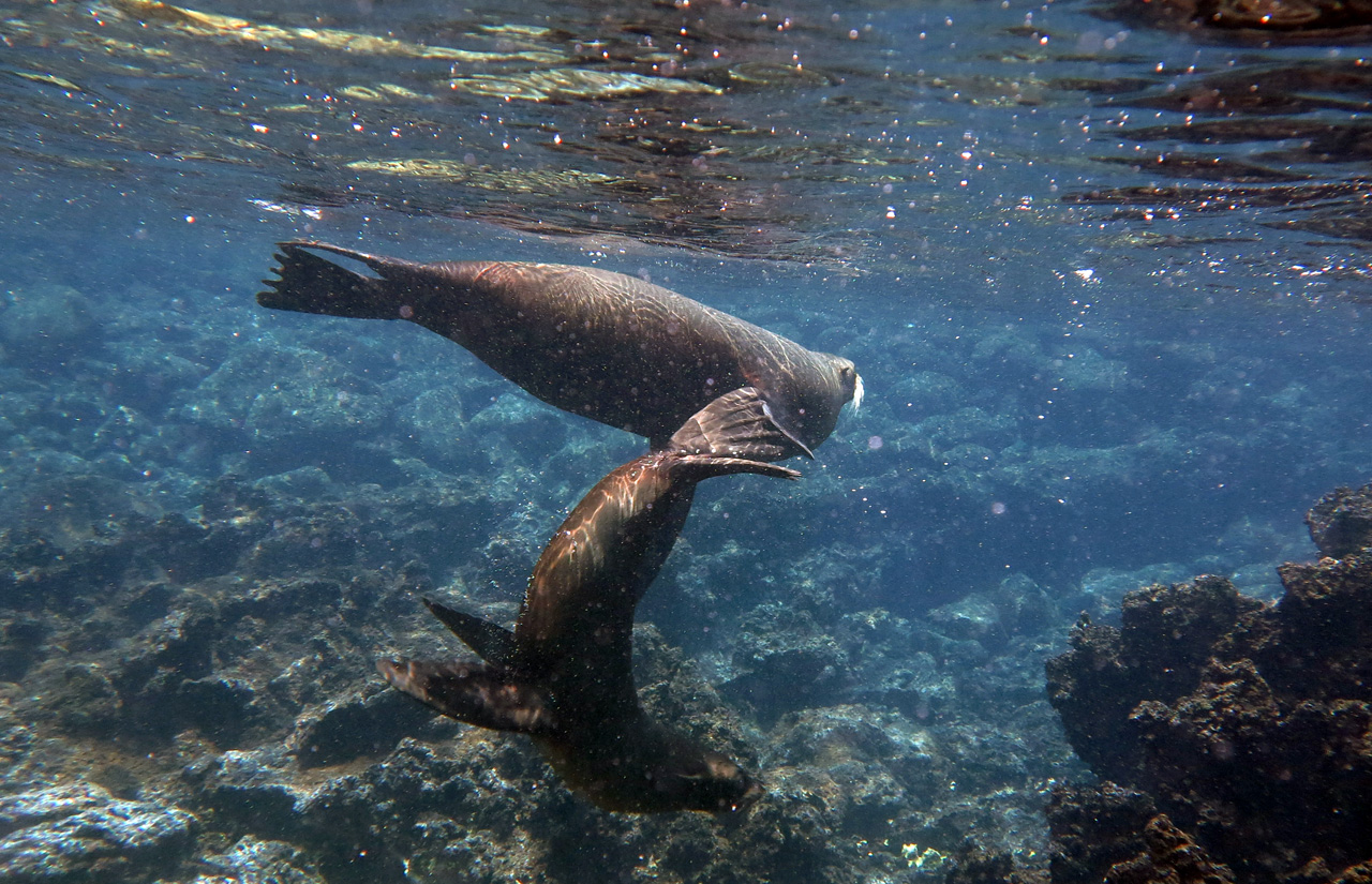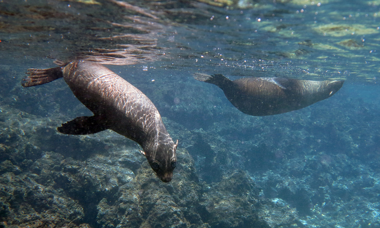 Sealions, like seals, seem unbothered by, but interested in, divers