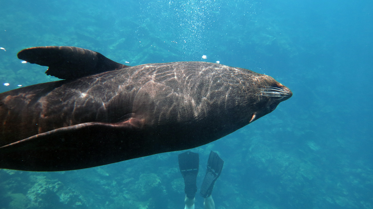 After this dive, plans for a third here were scrapped and we headed in the small RHIBs to a lagoon where we snorkeled with Fur Sealions.