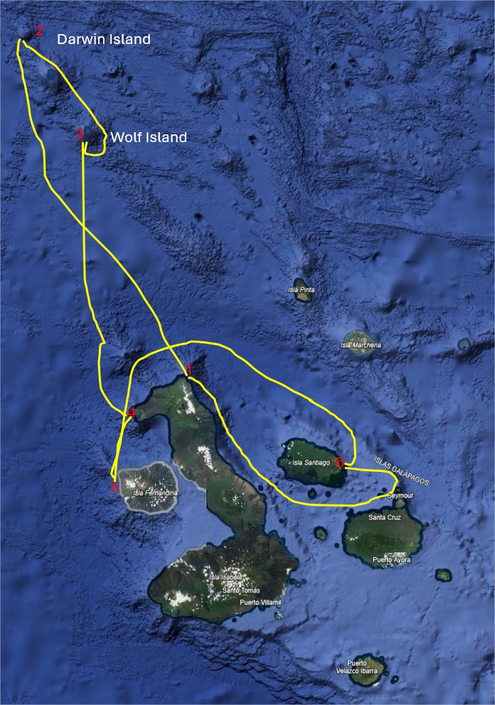 Our route, starting from, and returning to, Seymour/Baltra Island