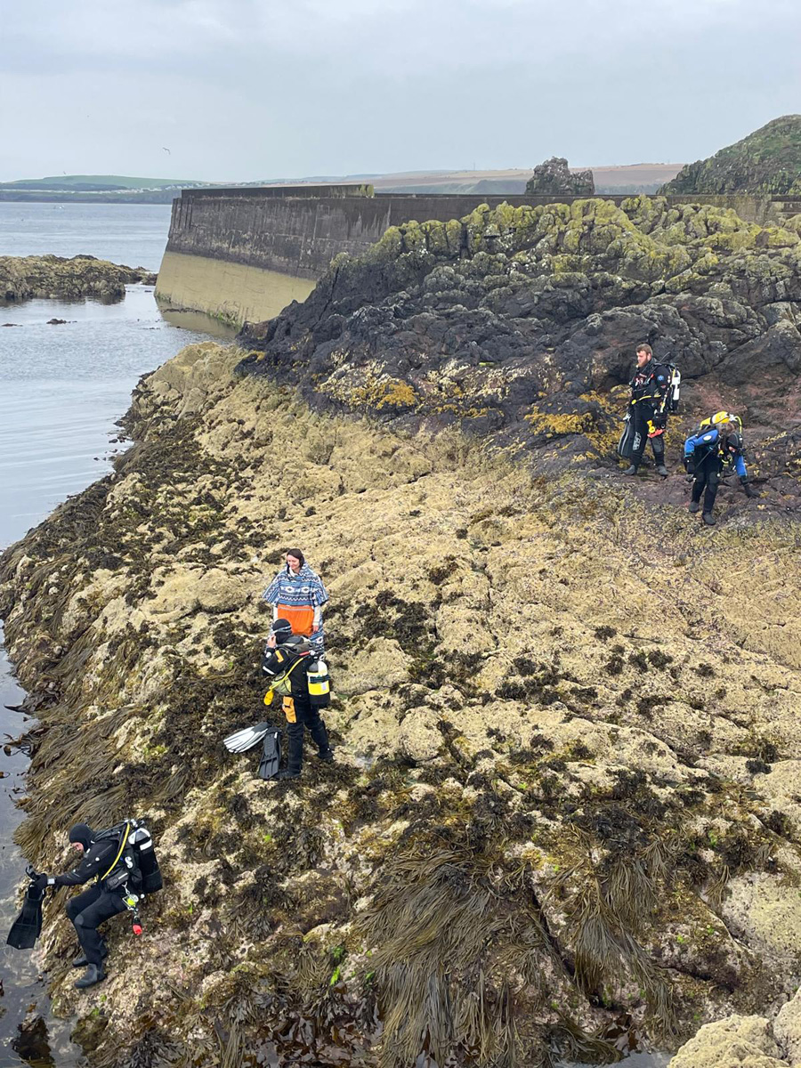 We returned to St Abbs harbour and unloaded our cylinders, so that they could be filled before the second dive at Thistly Briggs.