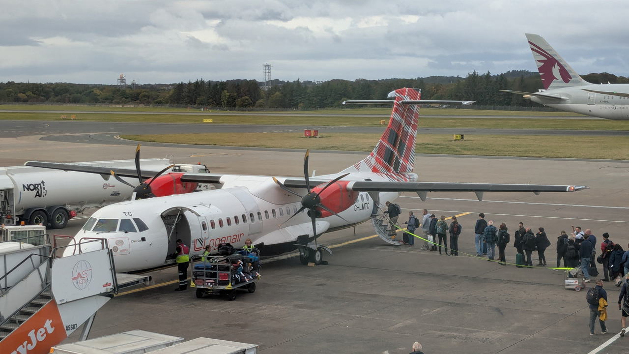 Their flight left, but after two abortive attempts to land in Aberdeen, diverted to Inverness, where they spent hours on the plane before being unloaded to an empty airport and sent by taxi back to Aberdeen airport!