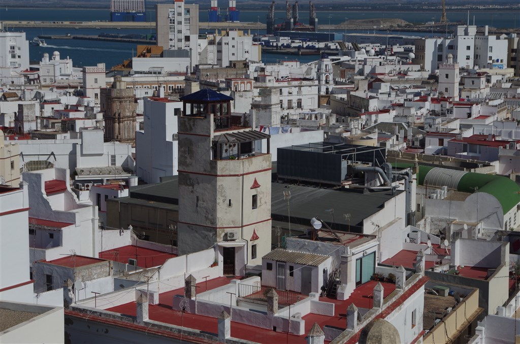 Another tower (built by merchants for advance warning of arriving traders) viewed from the Camera Obscura, the highest tower in Cadiz