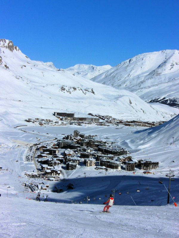 We skiied a wide and well groomed, but steep black (Leisse) down the back and then headed down Les Lanches (red) towards Tignes.