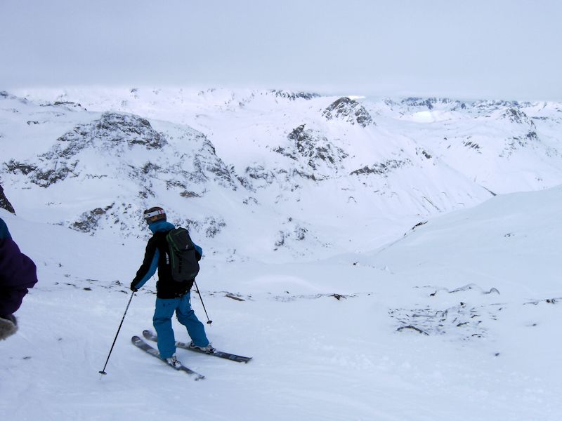 The snow was soft, but fairly heavy and so was hard on the legs compared to pure powder or piste and all the four of us skiing with the guide were tired by the end.