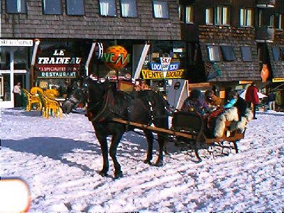 On arrival in Avoriaz, we checked straight into the Pierre & Vaccances run Porte Du Soleil apartments. With no ski room the appartments smelt of damp and the room was small and poorly equipped. In Avoriaz, luggage has to be loaded into sled, towed by rac-trac, while you walk or sled to the accomodation as coaches and cars are banned from the village centre.