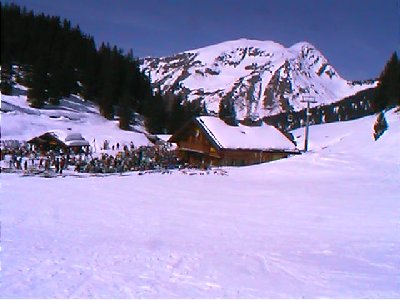 Access to Chavanette is also possible from the area of the Haute Forts. There's a good, unpisted, red under the Choucas chairlift and you can reach the steep mogulled Swiss Wall from here. This, near legendary run, is a fairly long and very steep (at the top) mogul filed, best avoided by beginners and lower intermediates! Taking the Chaux Fleurie lift from Les Lindarets allows access to Chatel and on. Les Lindarets valley has many places to eat, all doing reasonably priced food(!). The Swiss areas and Chatel are more open, with some good runs, but slushy snow in Easter sun from pretty early.