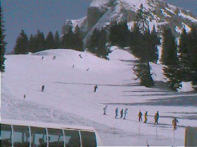 Skiing in the Morzine area is generally lower than Avoriaz or Switzerland, making lower run slushy even on our cold, overcast first day. However, there are many reds in this area, making it more interesting to intermediates and worth a day's visit for anyone. Earlier in a good season, it probably provides great skiing for a week. Les Gets has a couple of blacks but we never reached them.