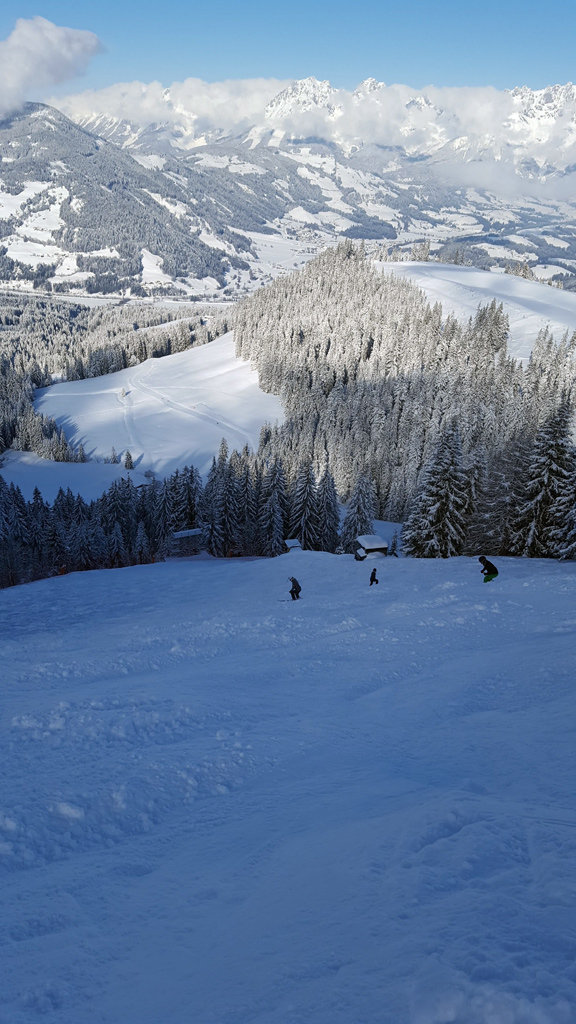 This is as far from Kirchberg as you can get in the Kitzbuhel ski area and, when we last skiied it, required you to ski down at Jochberg and take a bus!