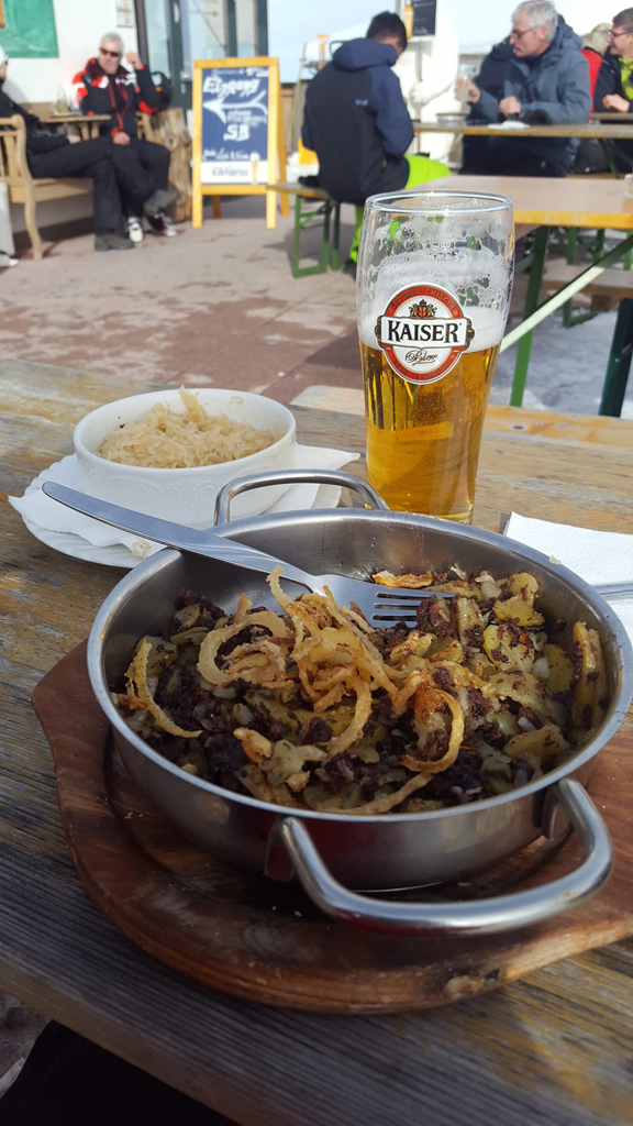 A Blutwurst Groestl and a Beer - The perfect Kitzbuhel lunch!