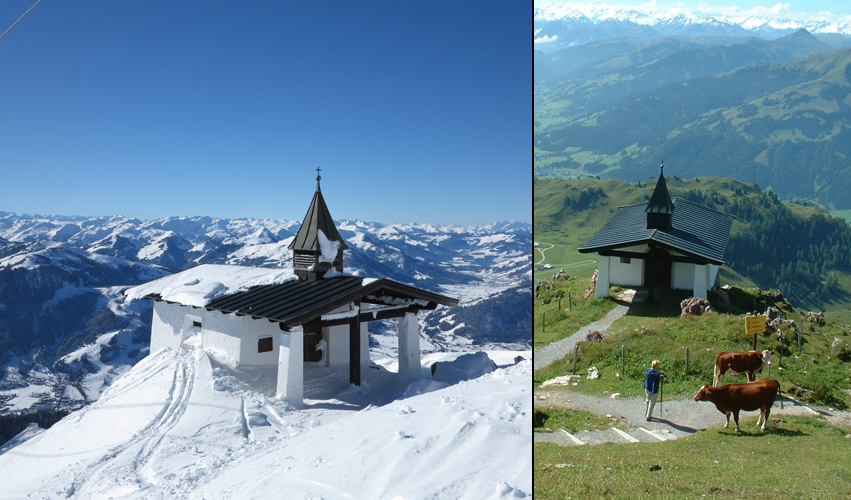 Small chapel atop the Horn, winter 2019 and summer 2005