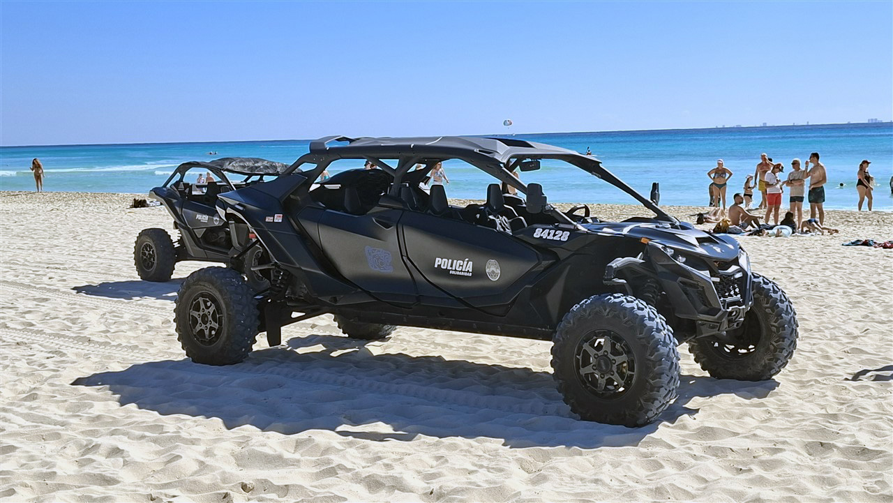 There was also the unexpected sight of a police patrol pulling up on the beach in very Batmobile-like buggies.