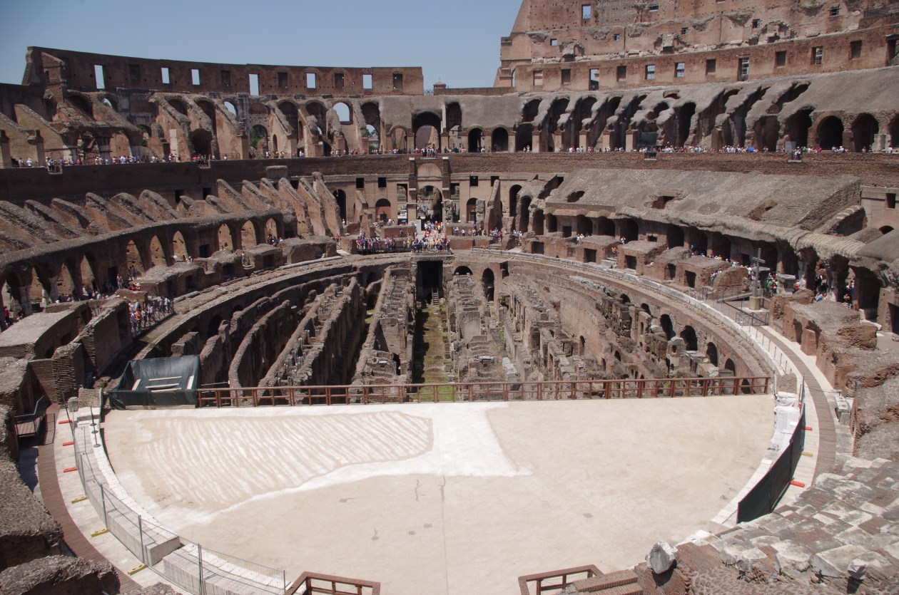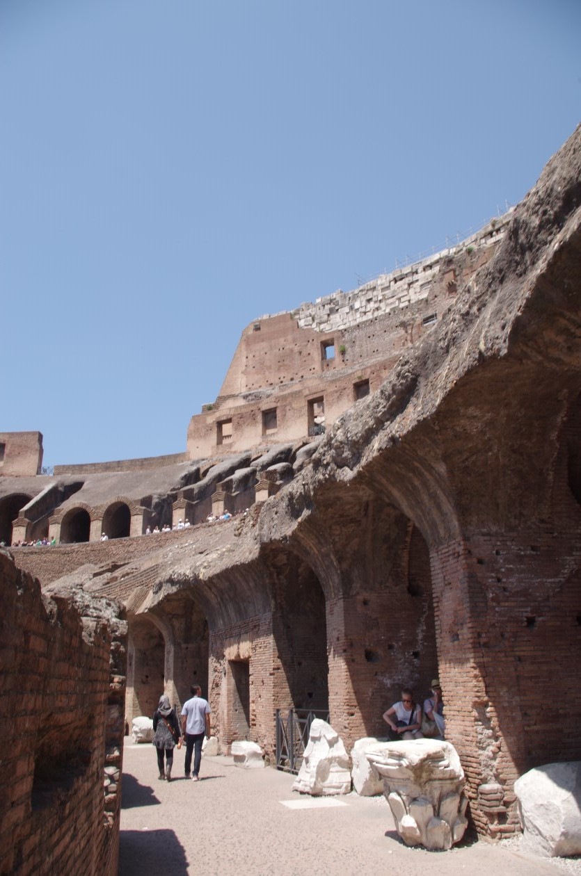 Below ground level at the Colosseum are rooms where animals, men and stores were