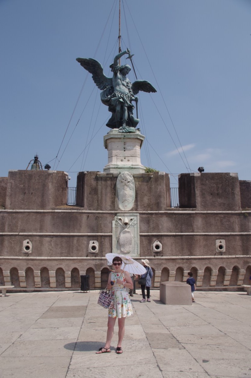 Sant'Angelo himself atop the Castel and Mandy sheltering from the blistering sun.