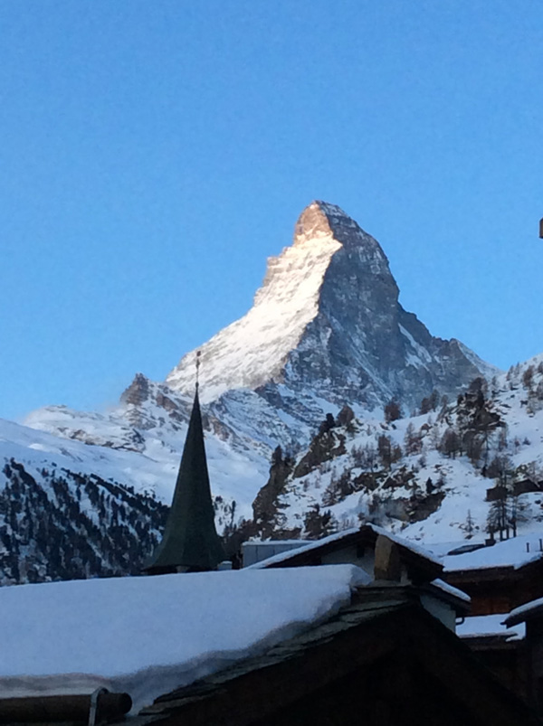 The Matterhorn dominates Zermatt whether you're in the town (here's the view from our bedroom window) or on any of the pistes.