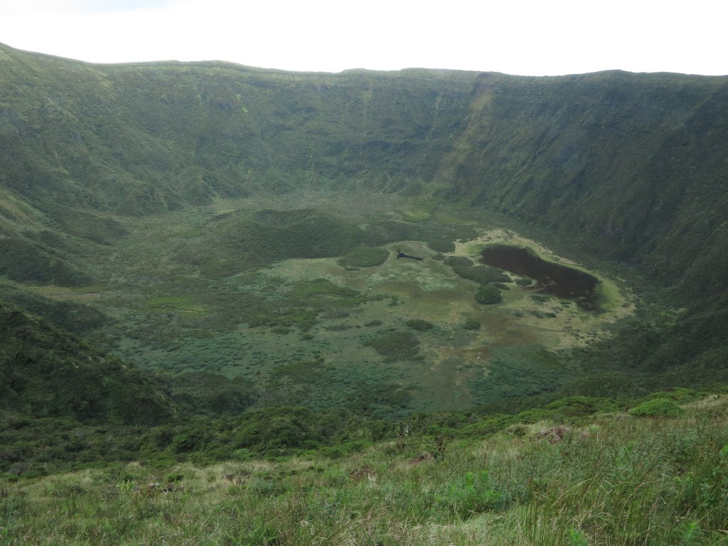 After a false start that took us to another hill (Monte Carneiro) overlooking Faial, we made our way up and were greeted by a little wind, but clear views both into the caldera and out over the island.