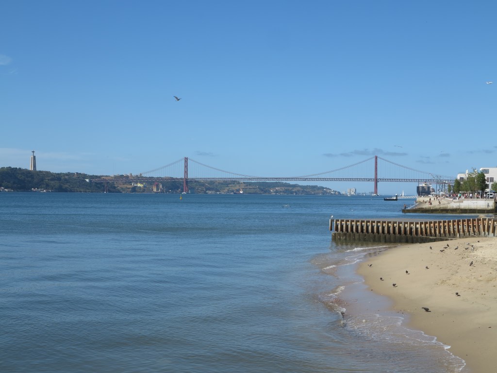 Lisbon is actually on a wide river mouth, the Tajo, and we admired the very Golden Gate Bridge like structure across it from the square before finding ourselves a tuk tuk for a quick spin around the old city.