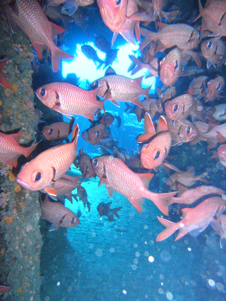 The first day the wind was strong on the east of the island, where we were staying, so a small group of us were bussed by the Dive Centre up to the Trou Aux Biches area in the North West, where we dived on a deliberately sunk Japanese Trawler, called The Stella Maru, first of all and then on a lovely reef.