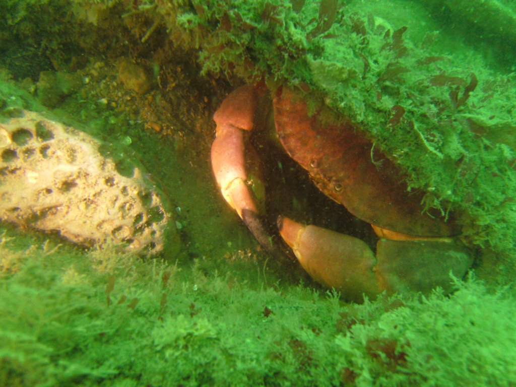This was probably the best dive, dropping onto the boiler and then exploring the wreck fairly extensively over 40 minutes or so. There were plenty of fish and crabs in evidence, including one huge crab, which resisted our attempts to tempt him out.