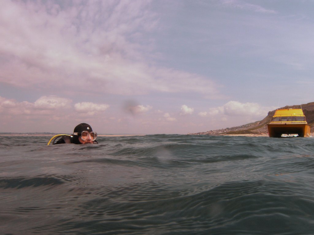 The final dive was a drift, in decent current along the Jurassic Coast. We really got the sensation of flying, but the flow took us deeper and deeper and there wasn't a huge amount to see, so we surfaced after 30 minutes with over 20 metres beneath us.
