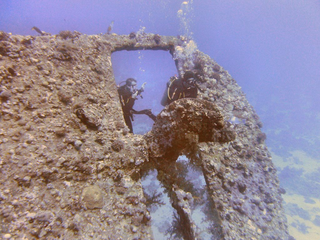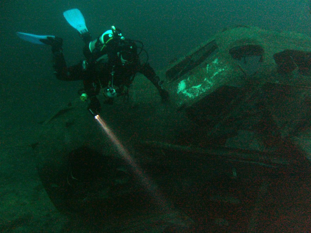 I was able to recover my wrist compass that I'd lost on the bus on a previous visit and Julian and I enjoyed exploring the Helicopters, planes, military vehicles and the double decker bus on our two dives.