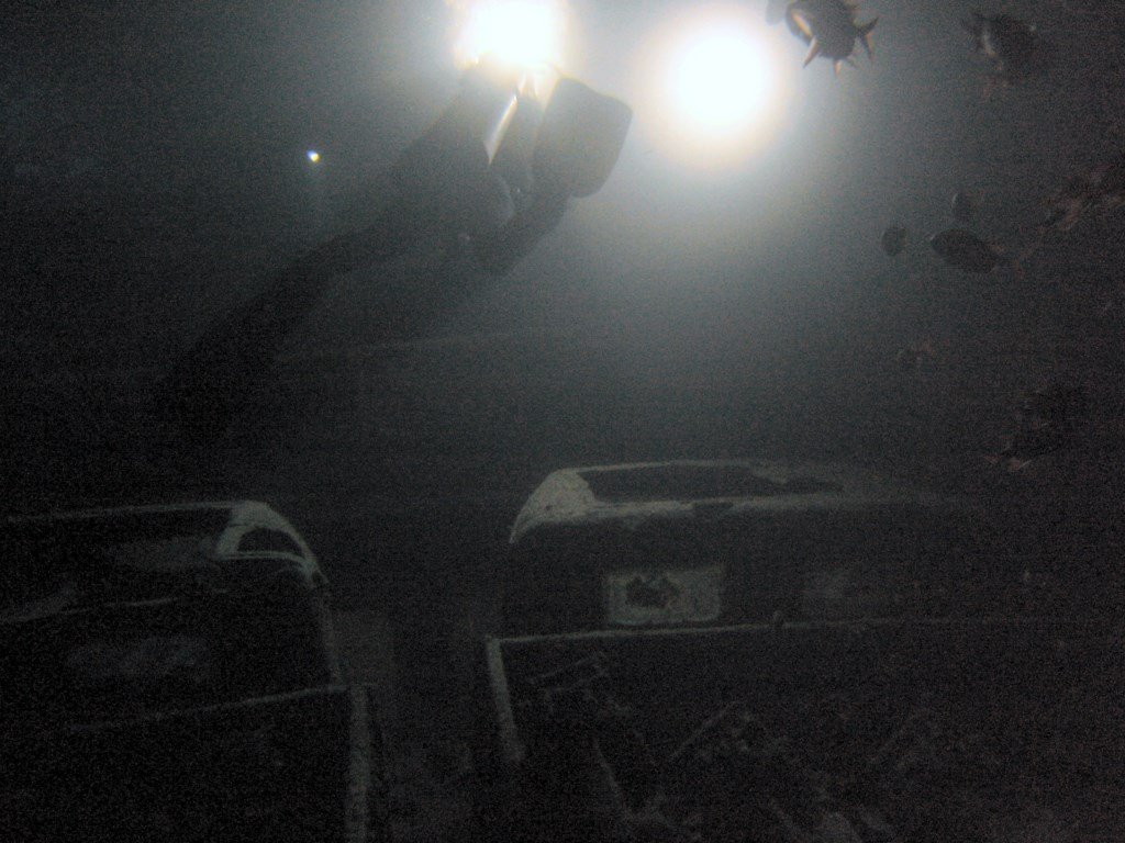 We entered here and descended to the lower deck passing through holds 1 and 2, past the lorries packed with motorcyles and rifles everything the Thistlegorm is famous for.