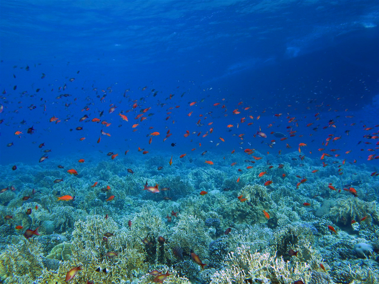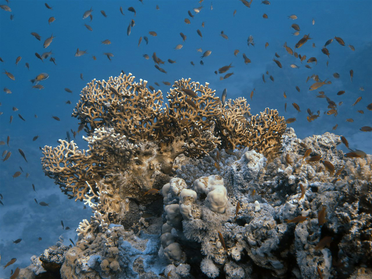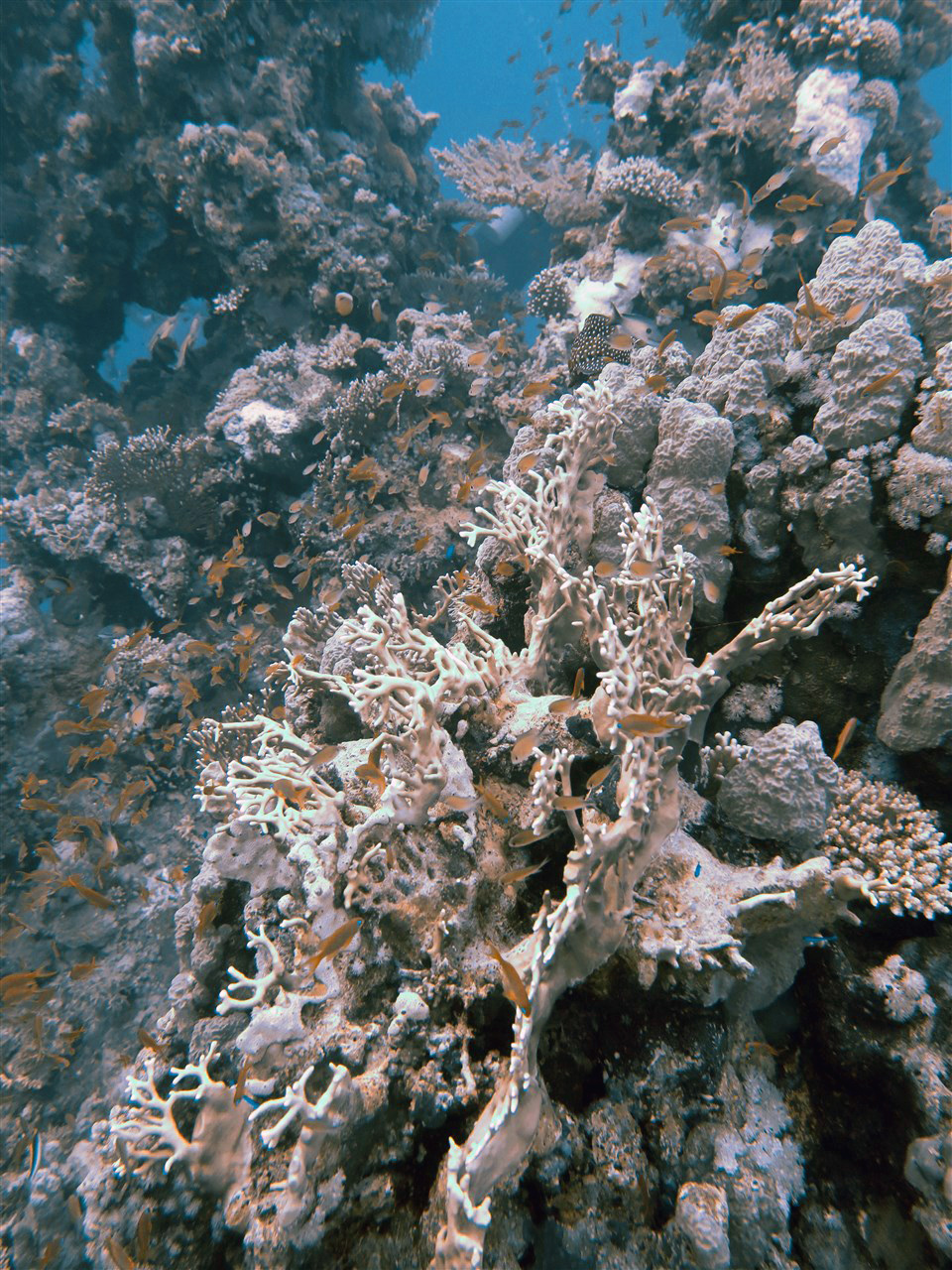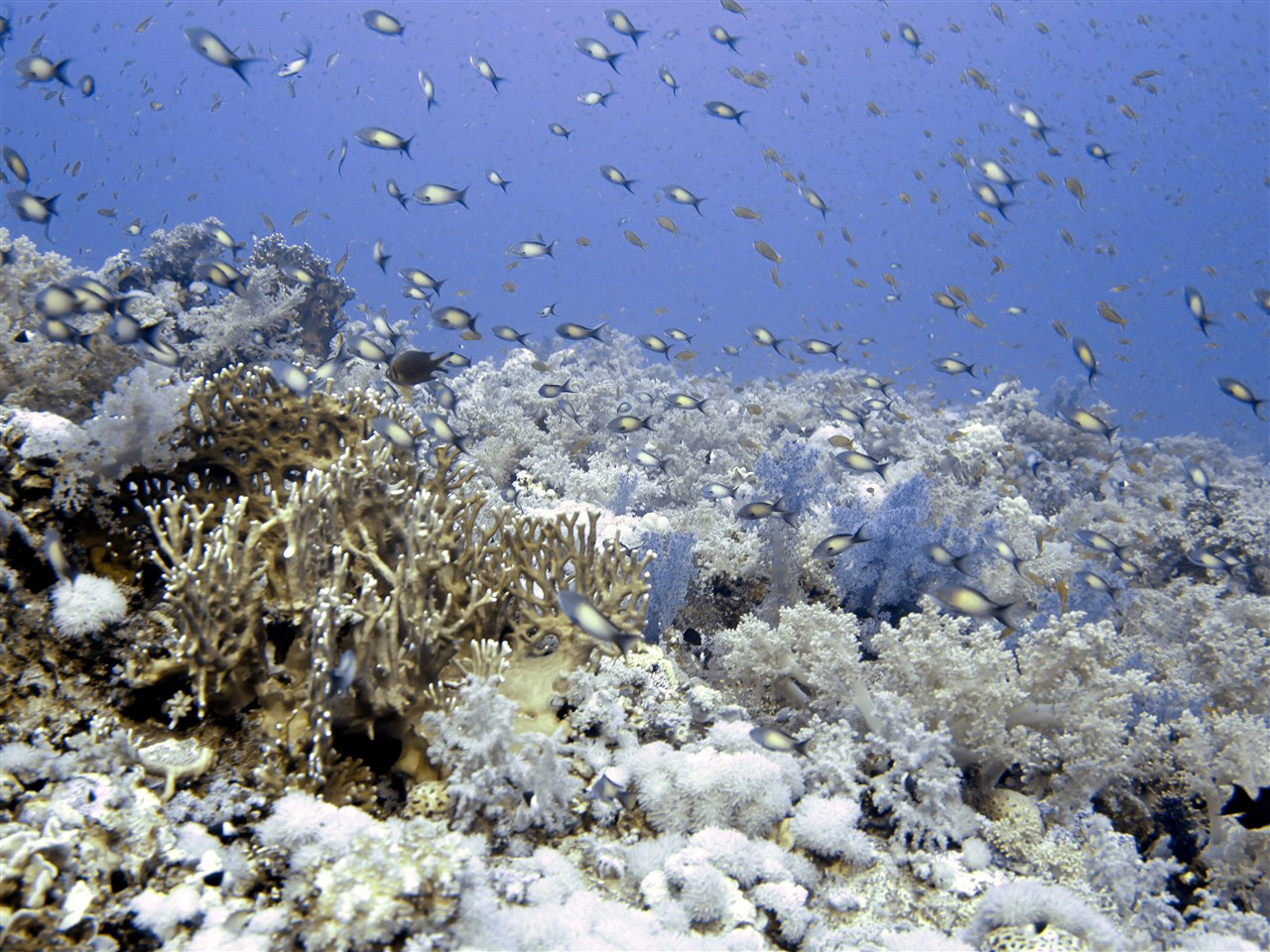 The site, Shiriniat, featured a number of coral heads, some looking very like trees with shoals of fish appearing as flocks of birds in and around the branches, over a reef and sandy seabed.
