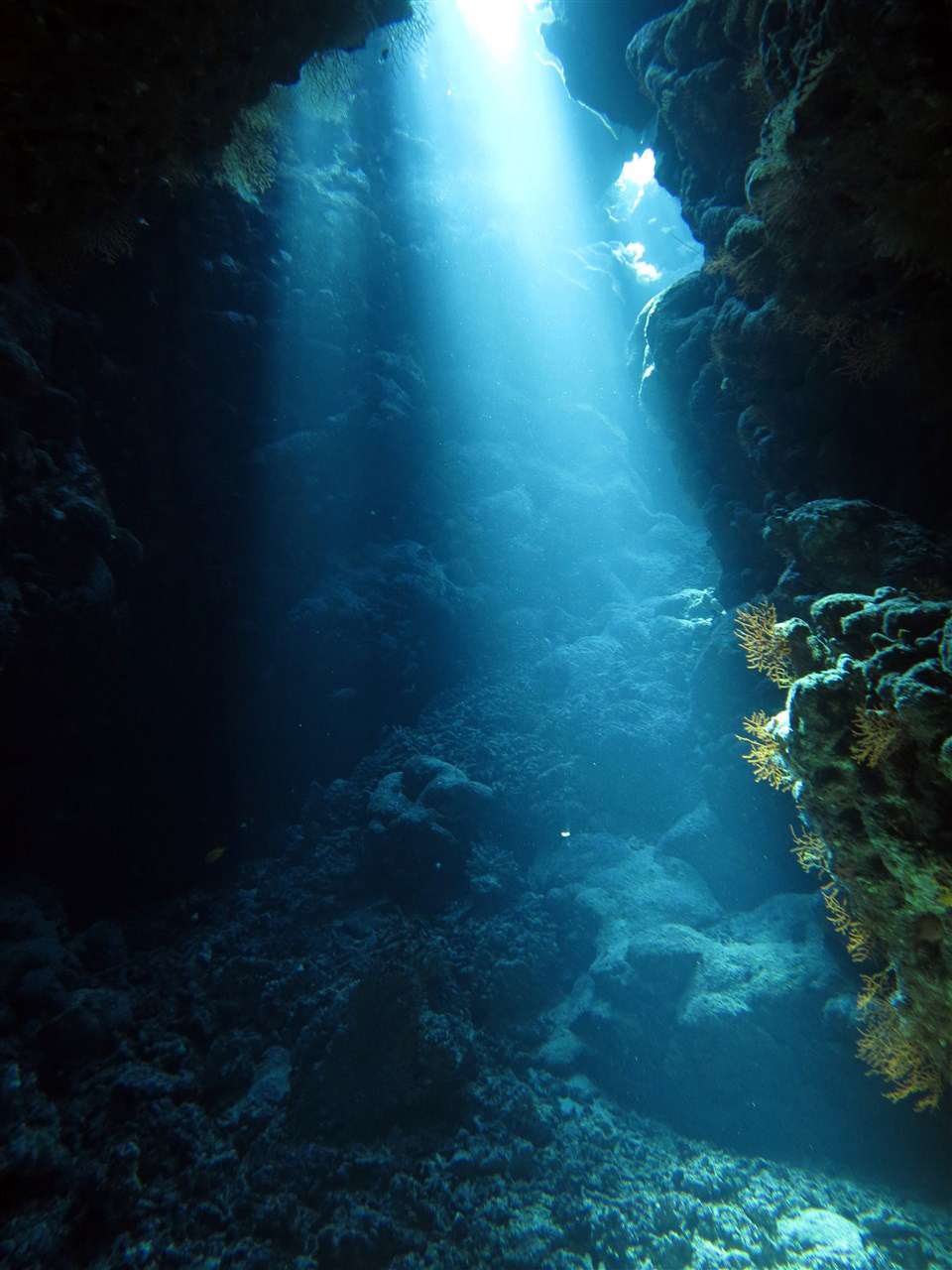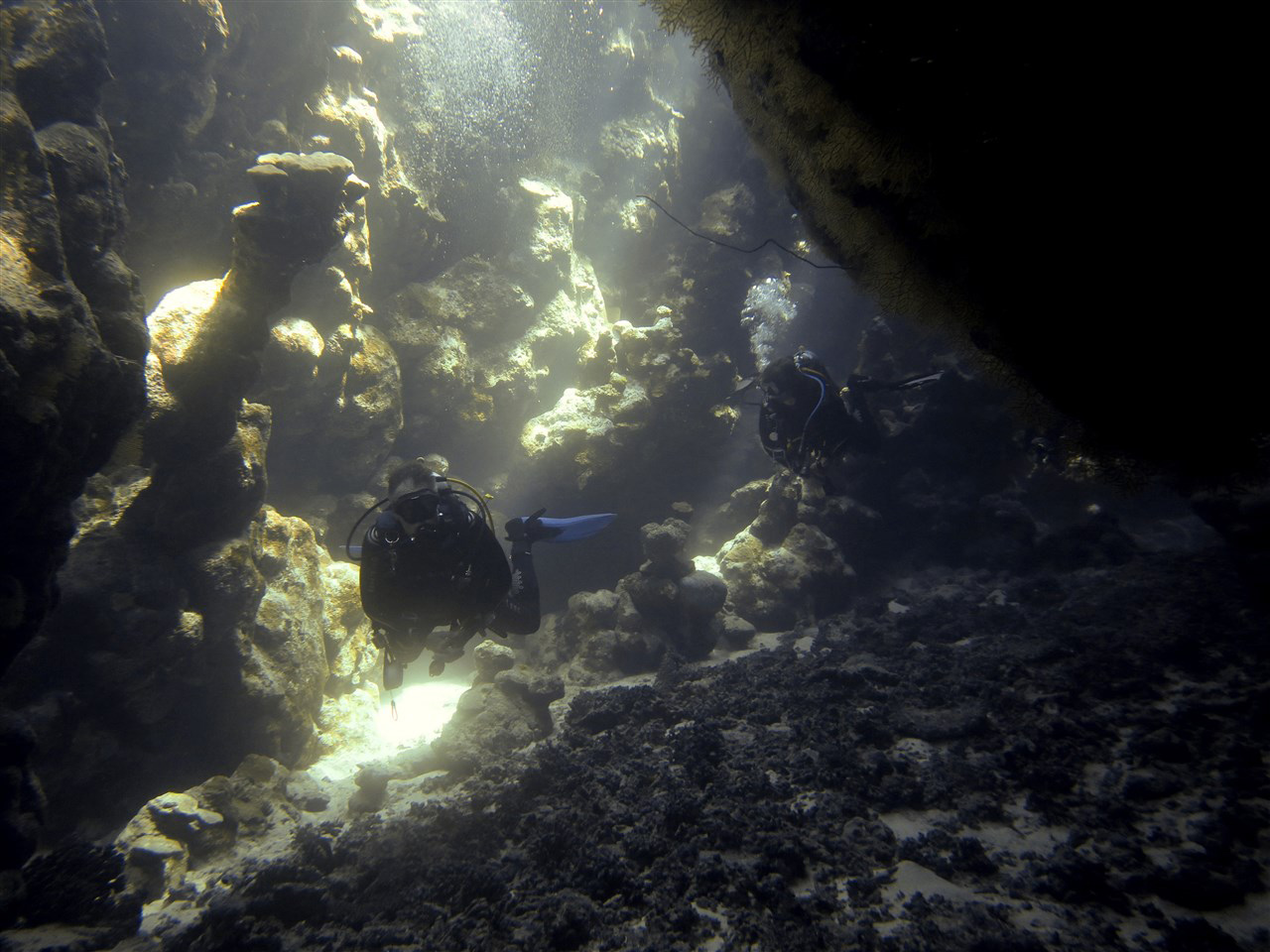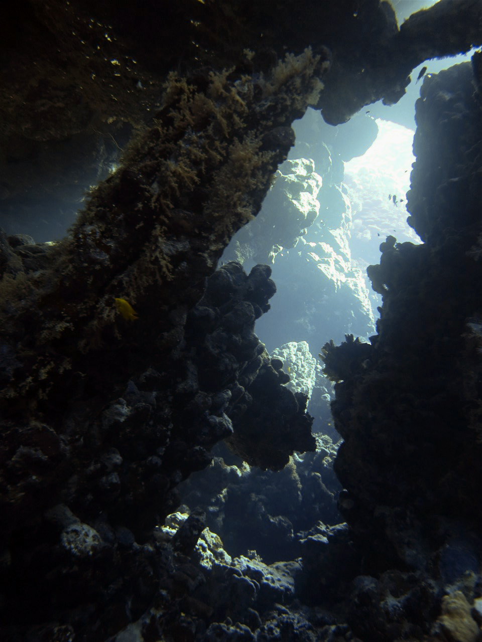 Here the impressive reef is honeycombed with reefs, mostly full enclosed above, although light enters at various points, causing beautiful lighting.