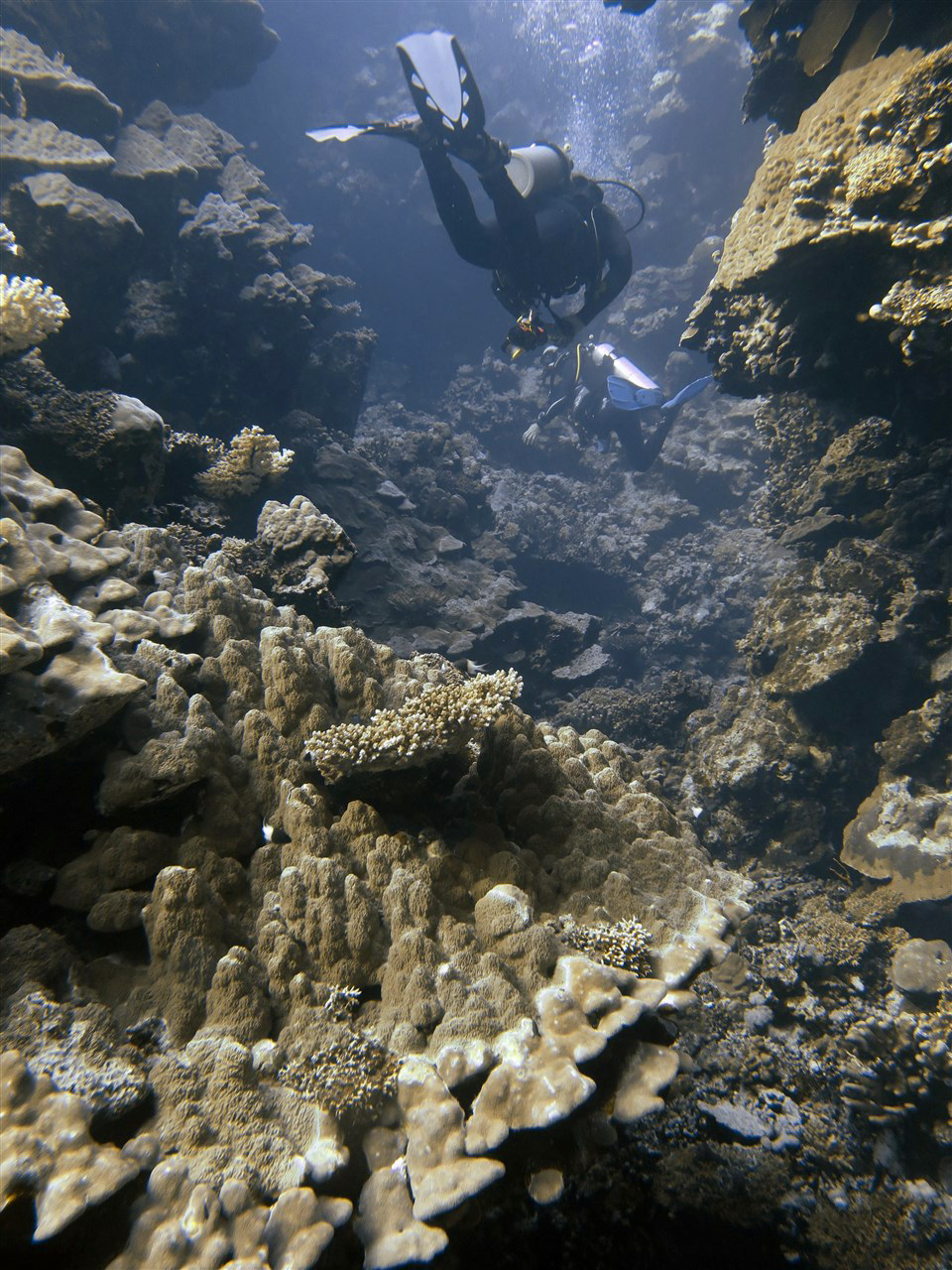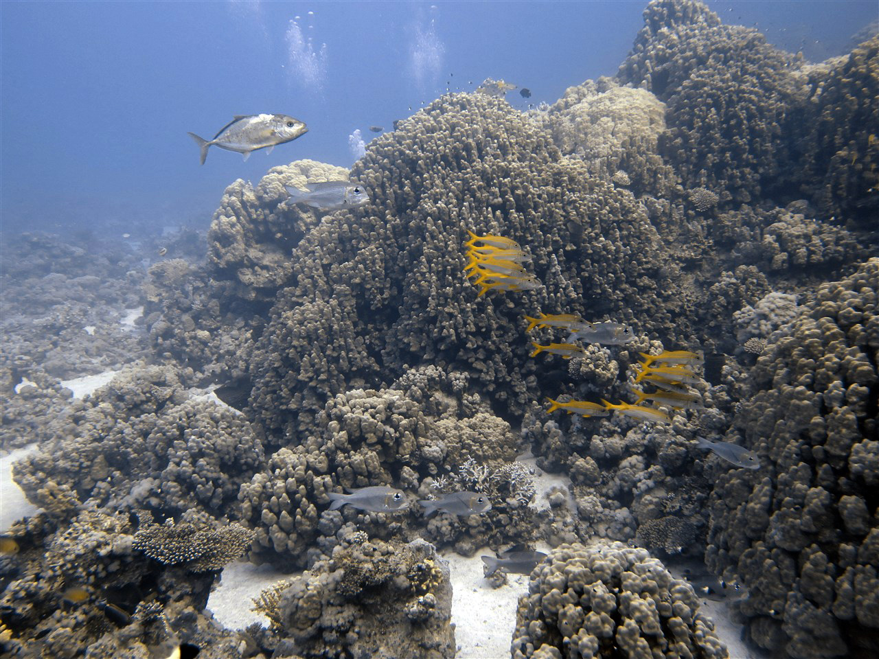 In the daylight, we could see the coral heads much more clearly and the way they were scattered around the site.
