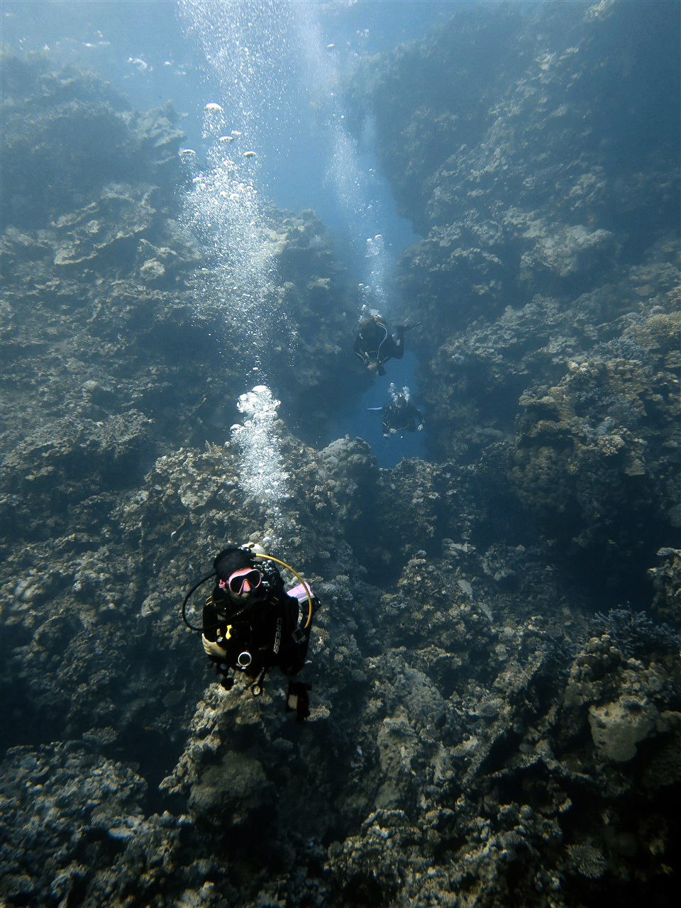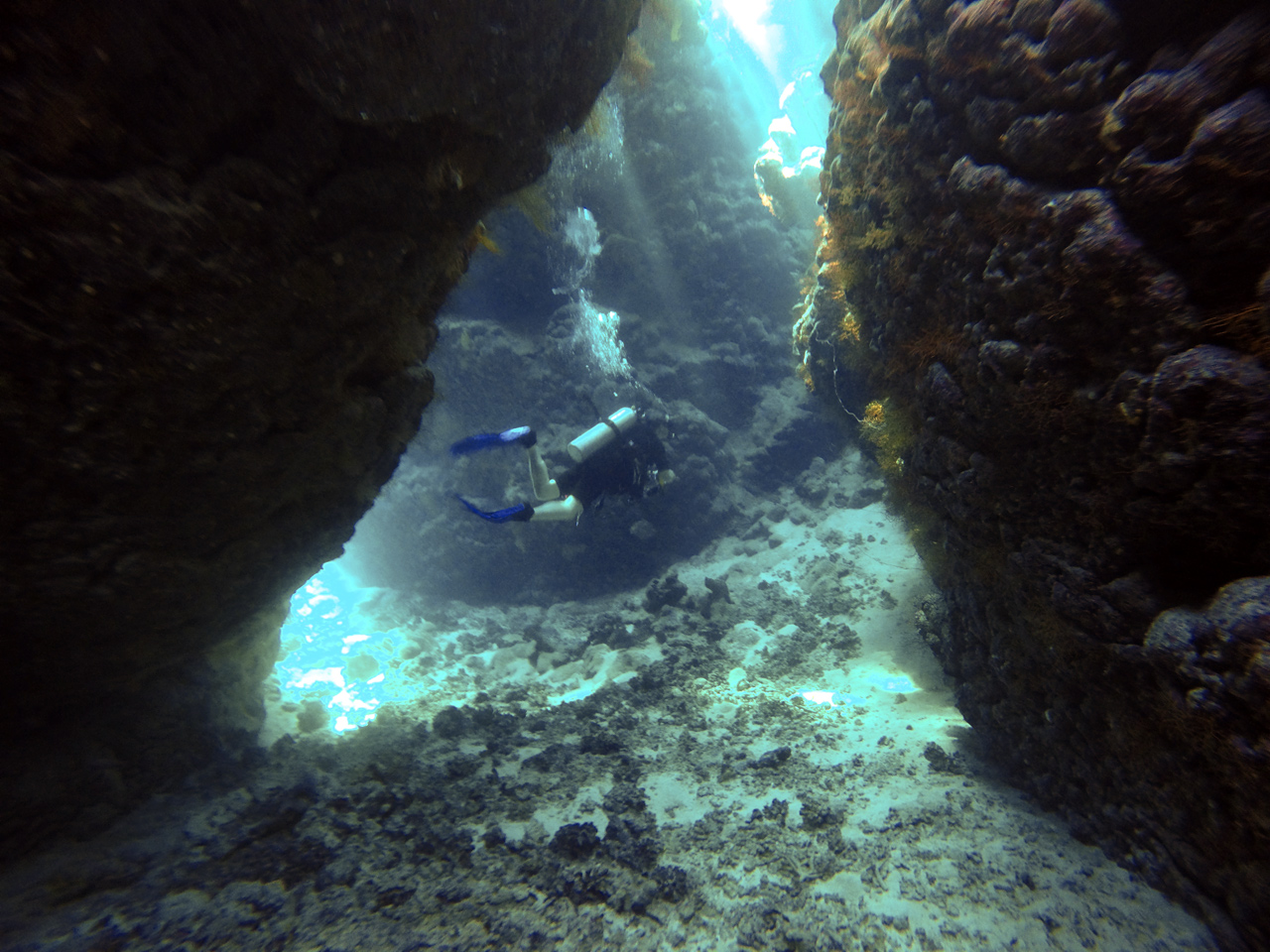 This site, Malahi or ‘Playground’, is quite similar to St John’s Caves, except that as well as some cave like canyons, it also features lots of tight swimthroughs and ups and downs.