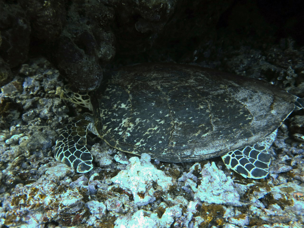 Near the end of the dive I spotted a good sized turtle sheltering in one of the canyon areas.