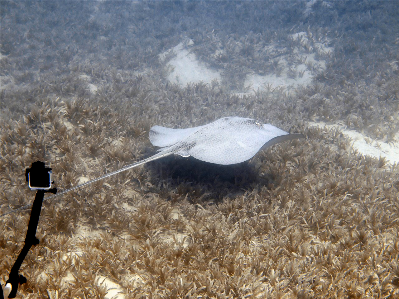 As we headed out across the sea grass it seemed likely we wouldn’t see much else, but then Abdu flapped his arms like a bird and pointed ahead at a cloud of sand rising from the sea bed.