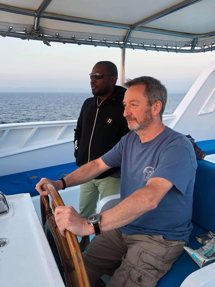 For some reason they let me drive the boat for a while on the approach to Elphinstone - We're here to tell the tale!