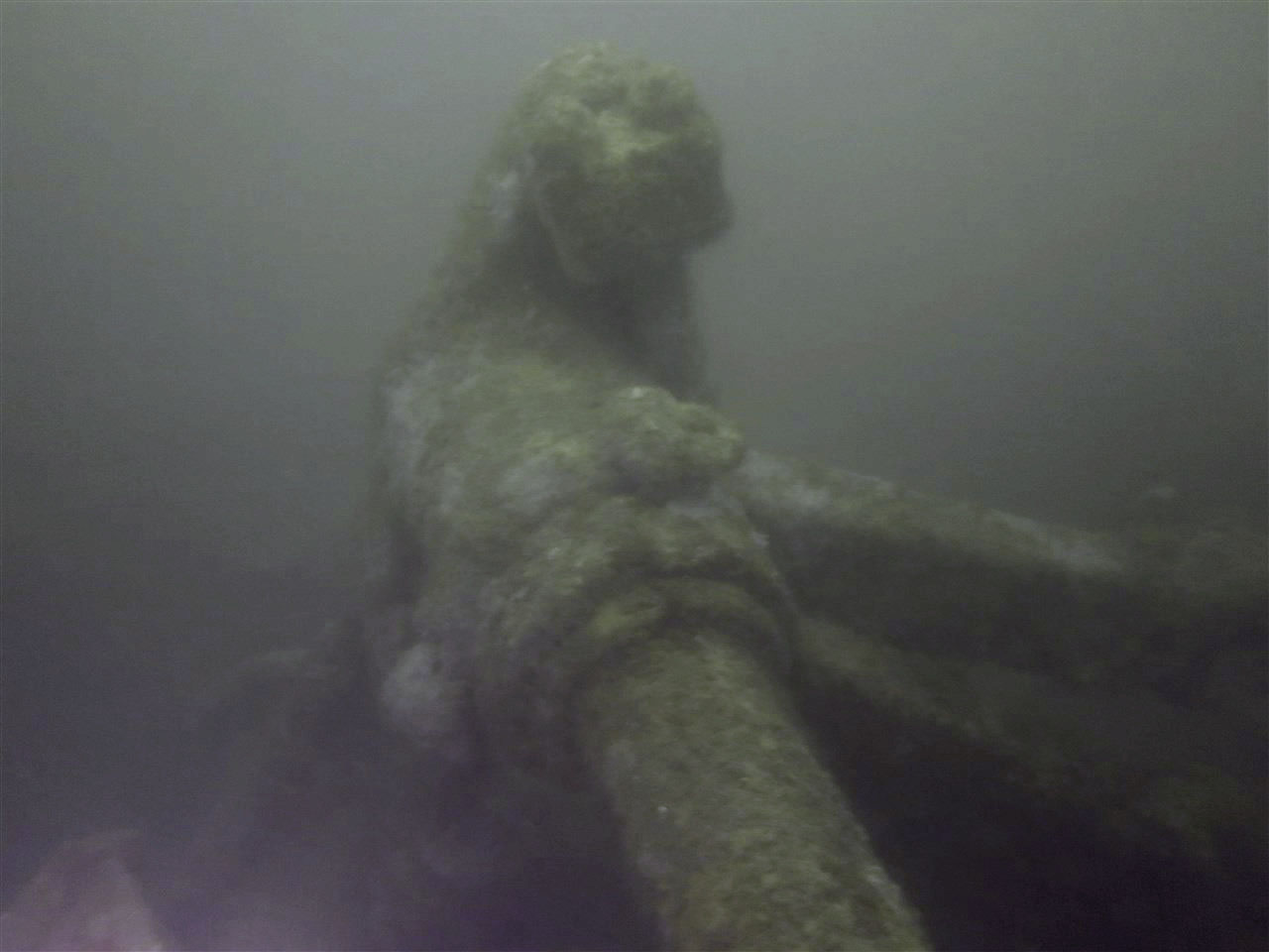 We dropped in and descended to shotline afixed to the large yellow metal marker buoy, but I was rather taken aback to find nothing but a crushed blue dinghy at the bottom of it!
