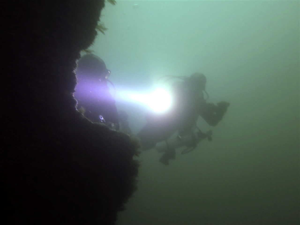 We tried to get a shot of my 500th dive celebrations on the "Baron Garioch", but it was too dark