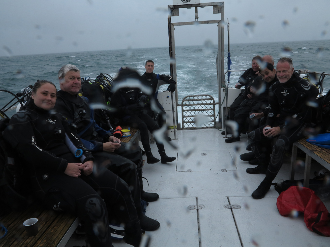 This year, too, I had trouble filling all the available spaces. We had 11 (originally, Darren had to drop out due to a back problem) for Saturday, but only 8 people (initially, more on that later) for Sunday, but Swanage Boat Charters managed to sell all our available places for the morning dive on Sunday, which helped defer some of the cost.