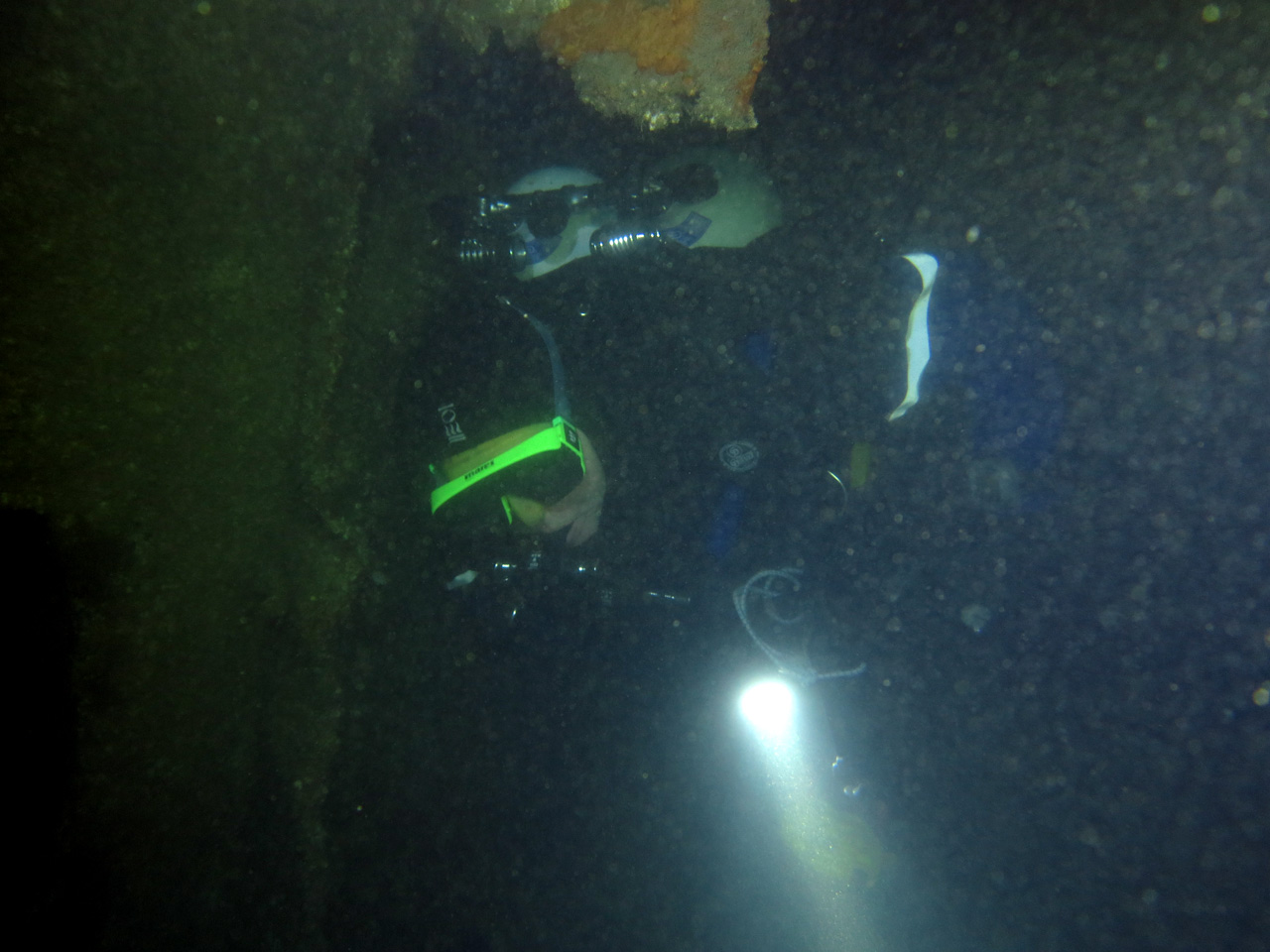 Mostly we were swimming around the stern, superstructure and the first couple of holds, looking into holes in the plates or around some of the crumbling sections allowing us to swim into them a little for a look before coming back out