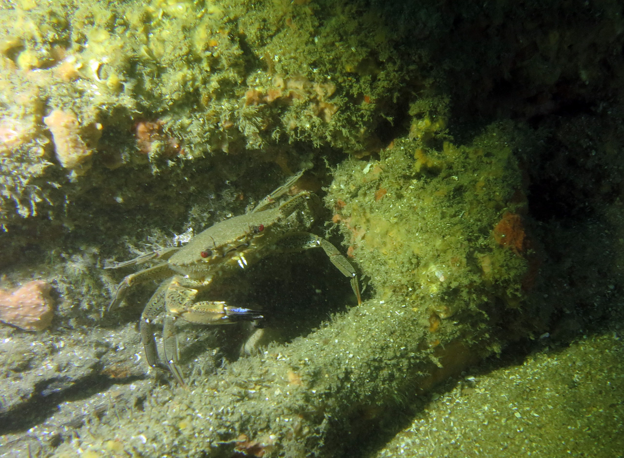 On the wreck, we quickly found a section of wreck standing 4 metres or so from the seabed, which was at around 32 metres. We seemed to swim around this for a while, spotting Lobsters, some large crabs, a couple of Conger Eels and even a Butterfish (pretty sure that was a first in the UK for me).