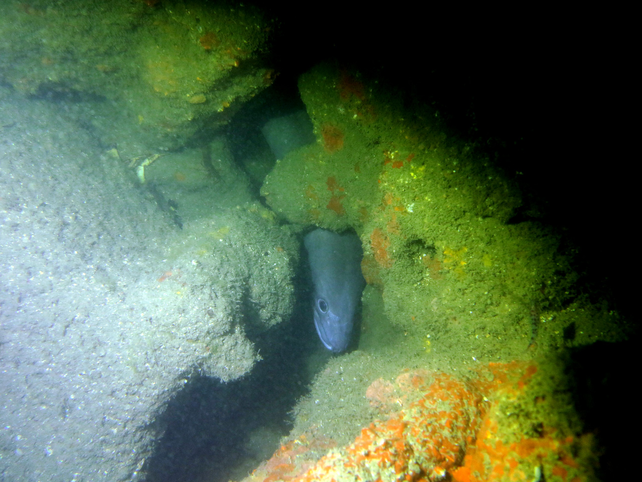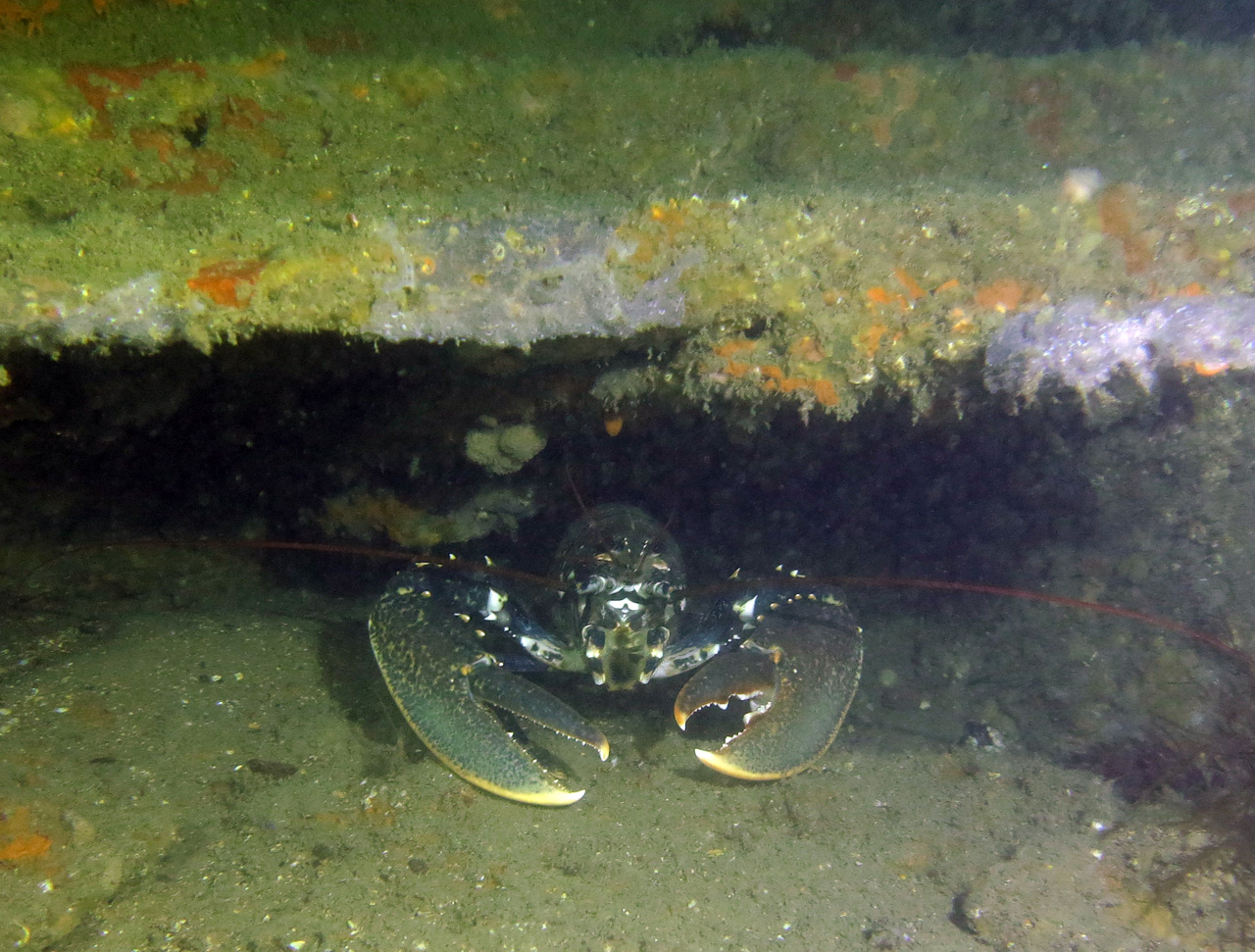 We spotted a small conger when we first arrived and a Lobster hiding deep under a plate.