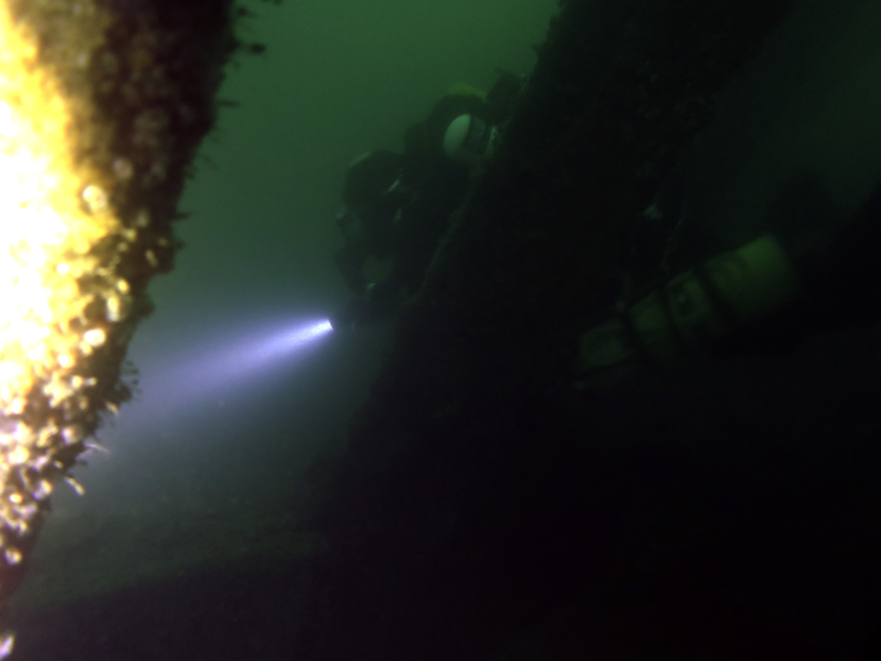 At one point we were right down on the seabed and swum around the stern to look up above us and see the whole stern rising up, even in limited vis this was an impressive sight.