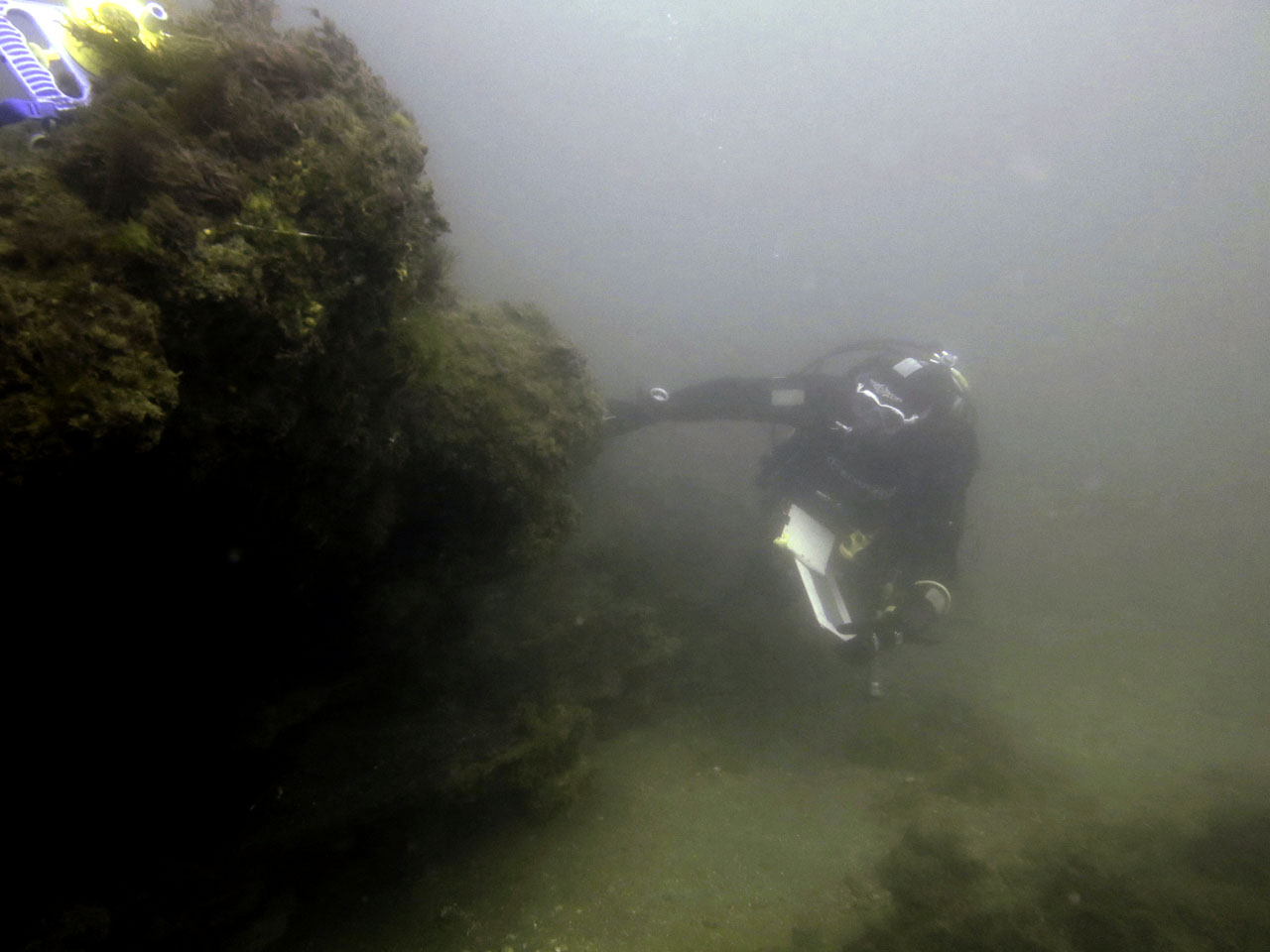 The following morning was just as bright, if a fraction windier, but our first dive, to complete adding the markers was far more successful, being aided by a dedicated lump-hammer!