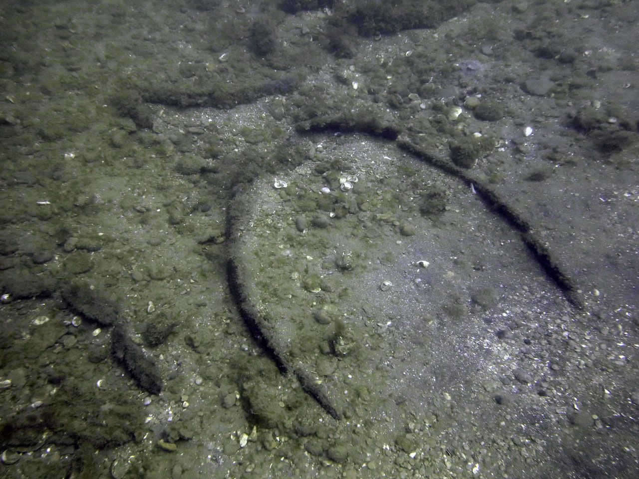 The shot was secured to a pile of 3 cannons and it was easy to swim around the outside of the hull, clearly visible in the sand.