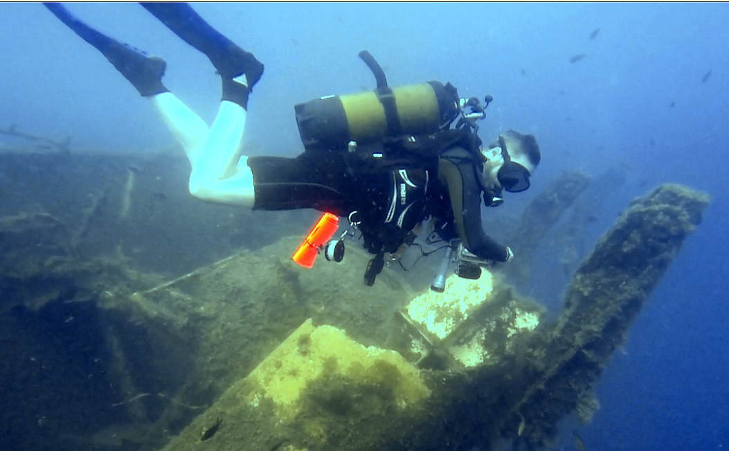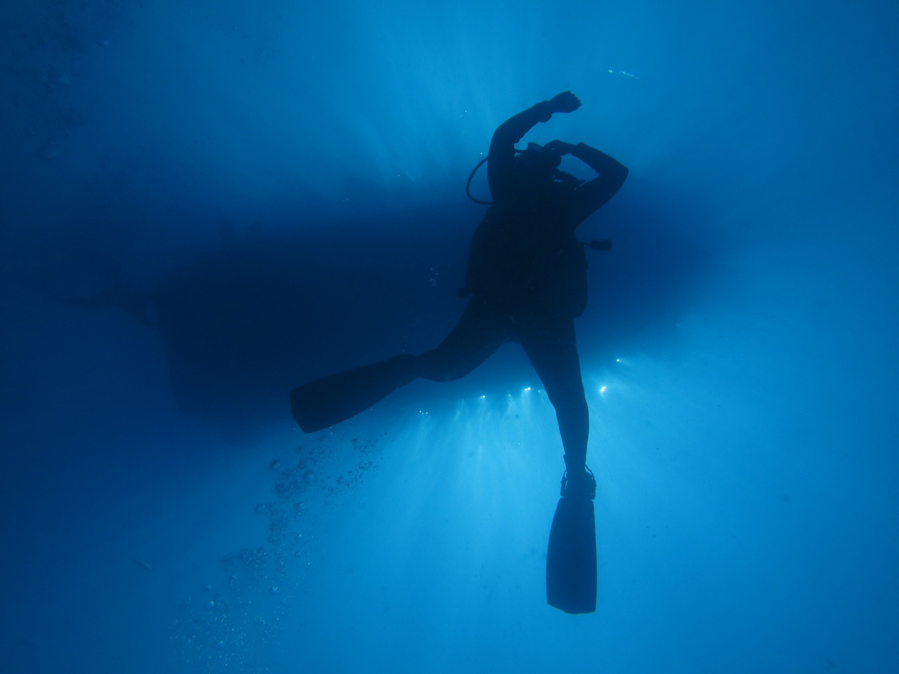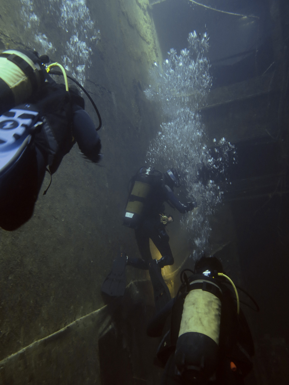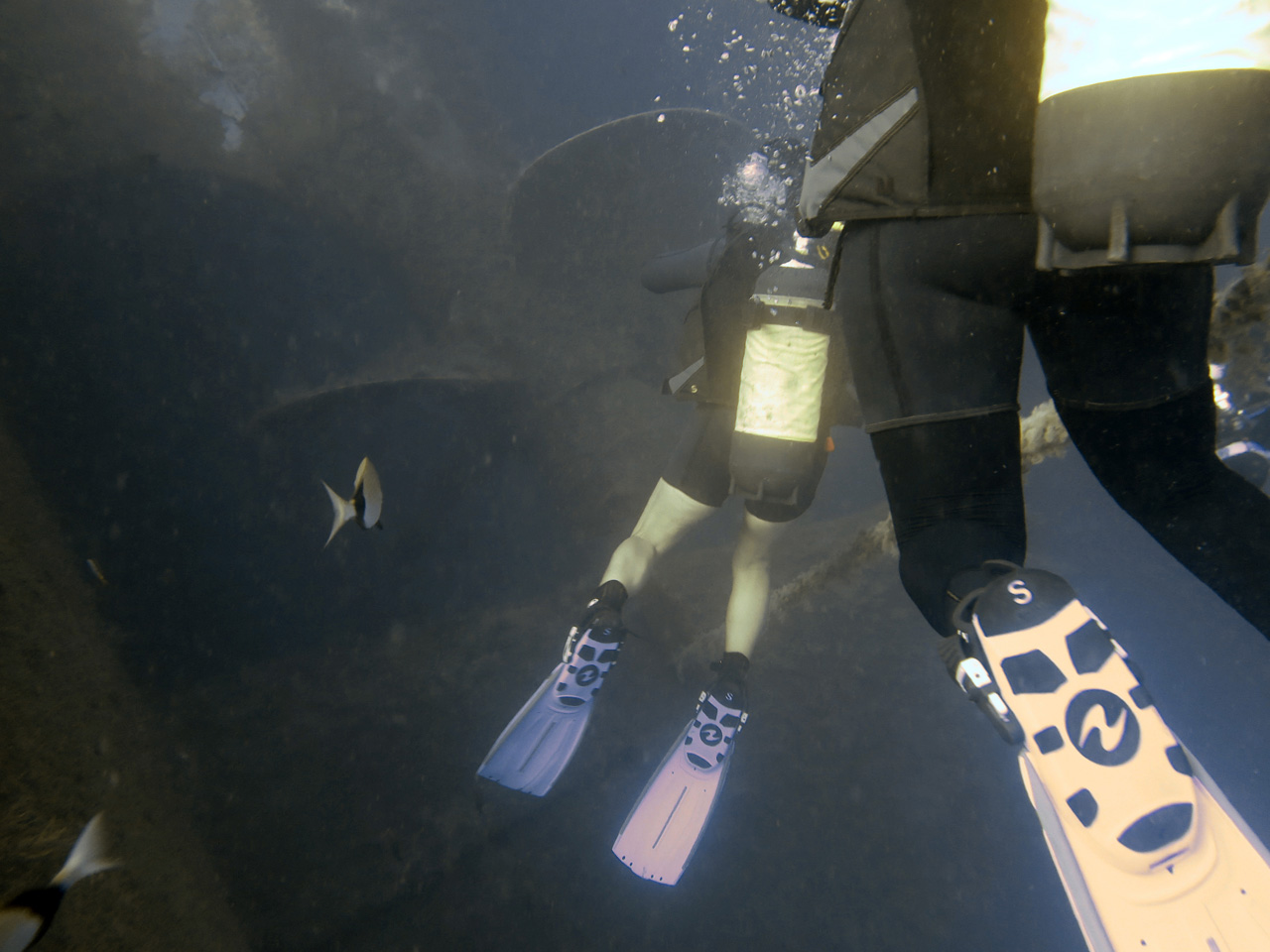 We swam up to the front of the superstructure, having a quick look inside the bridge and then back to the shot.