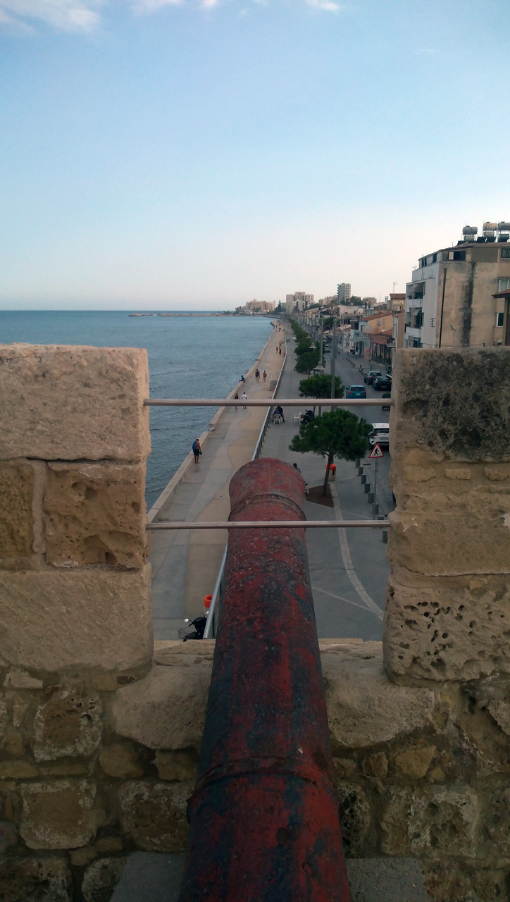 Cannon looking along the seafront towards my apartment near the fishing harbour
